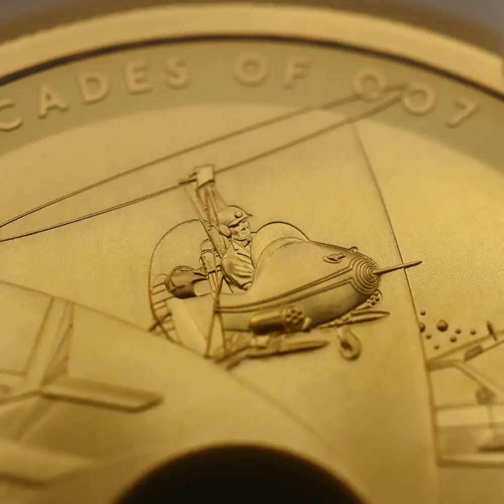 英国ロイヤルミントの傑作モダンコインシリーズ「映画007の60年」は、第1作が公開された1960年代から10年ごとの諸作品に対するオマージュとして発表され、ごく最近シリーズを完結させたばかりです。毎回ボンドの秘密兵器を描くデザインを紹介して話題を呼んだ同シリーズですが、今回はその番外編としての新たな一枚がコレクションに加わりました。今回ご紹介させていただくコインは、これまでにコイン上にて紹介されたボンドの秘密兵器全6種を一枚のコイン上に描く特別版であり、「コンプリ―ター=完全版」と名付けられました。映画「007シリーズ」で活躍したこれら6種の秘密兵器は、時にボンドの乗り物として、また時に敵を攻撃する強烈な破壊機器として劇中で機能し、数々の印象的なシーンを彩ってきました。コイン表面には2022年のエリザベス2世の崩御に際して英国王位を継承した現英国王チャールズ3世の「第1公式コイン肖像」が描かれています。1958年に誕生したチャールズ国王は生粋のボンド世代に当たり、国王が歩んでこられた人生と同時期にボンド映画は国際的に注目され、飛躍的な成功を収めたと言えます。ロイヤルミントの名匠マーティン・ジェニングスの才気漲る感性が光るこの作品は、21世紀以降に発表されたコインポートレートの秀作として注目に値します。過去60年間にわたって世界中の映画ファンに愛され、今なおスパイ映画の代表作として高い人気を誇る007シリーズ。この映画シリーズにまつわるサクセスストーリーは、今後も長期間にわたって続くことでしょう。