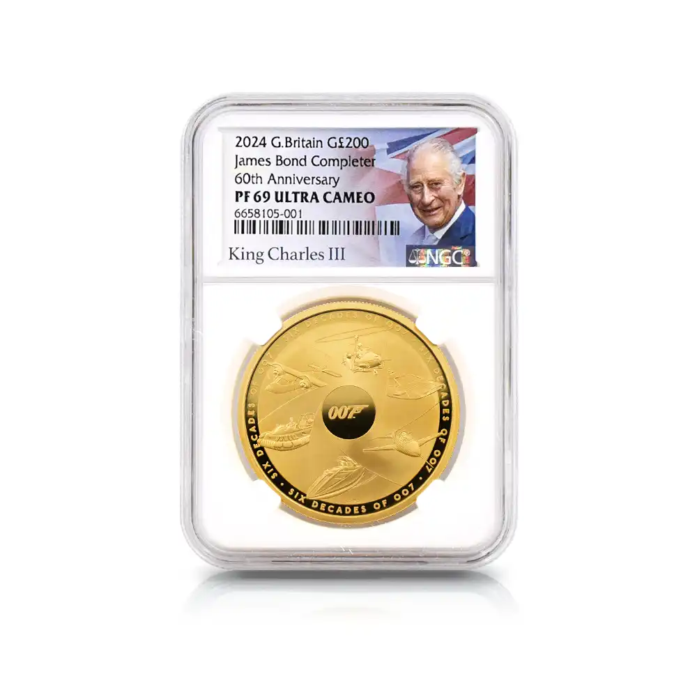 2024 チャールズ3世 「007の60年」ボンド映画記念シリーズ コンプリーター 200ポンド 2オンス金貨 NGC PF69UC 箱付き