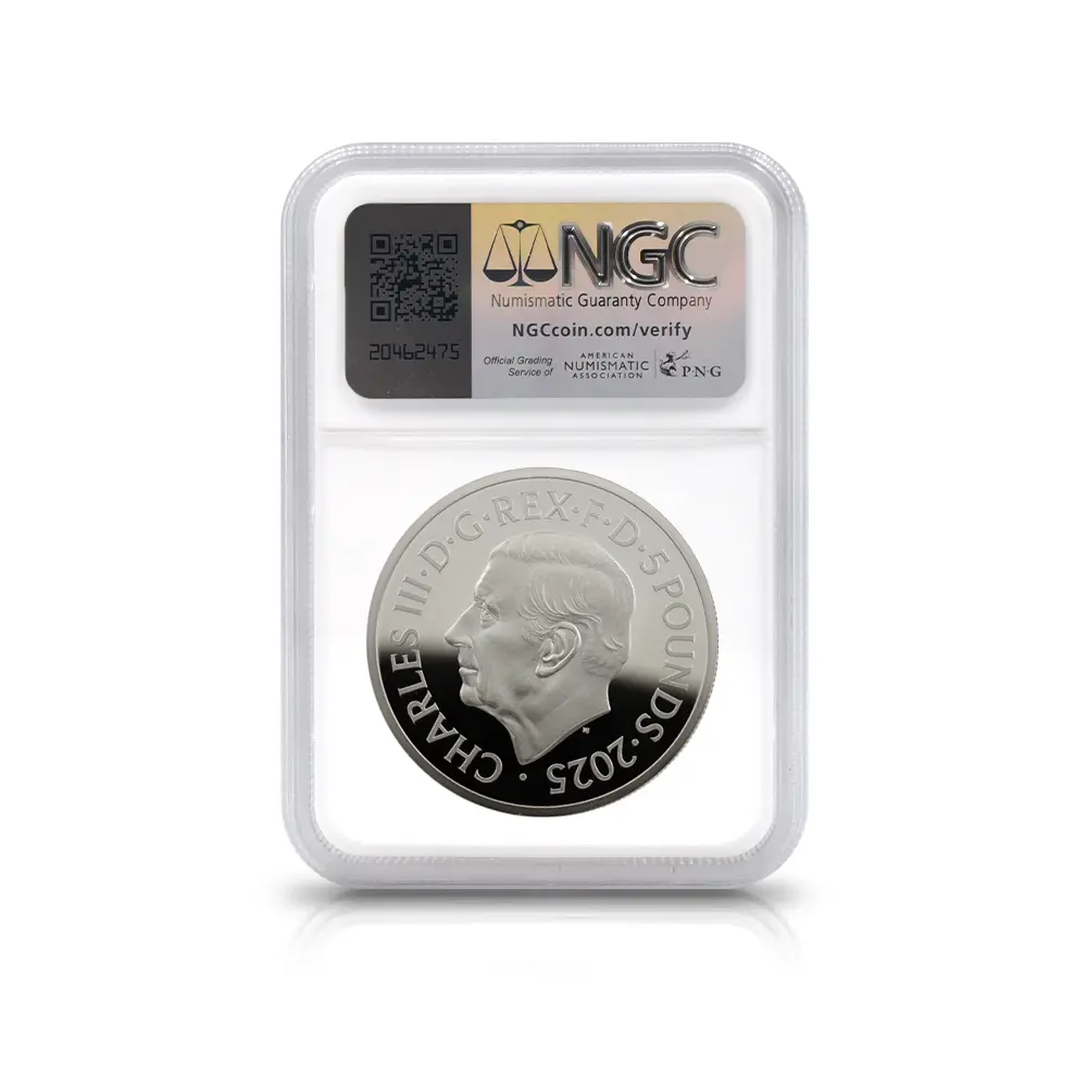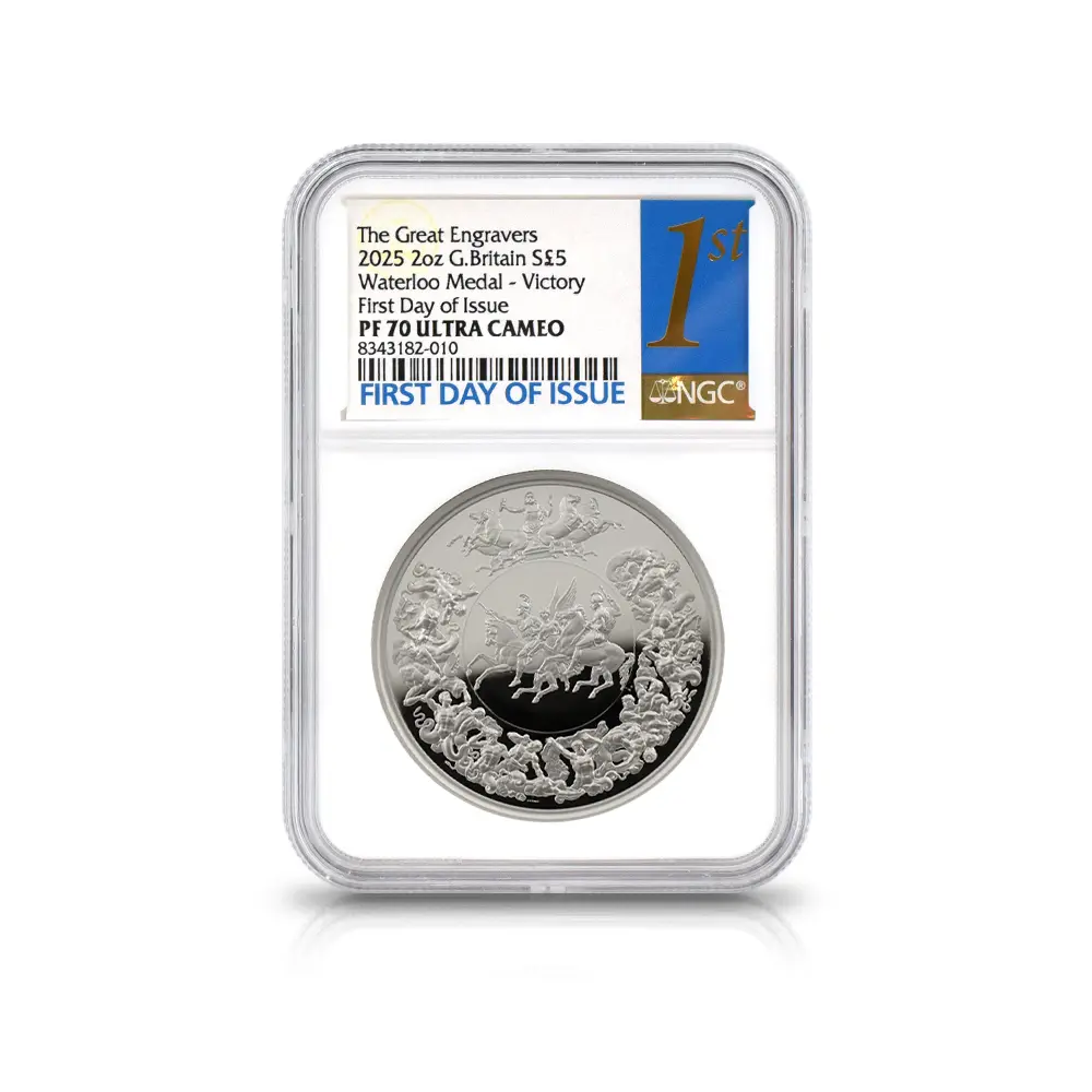 2025 チャールズ3世 ワーテルロー・メダル - 勝利 5ポンド2オンス銀貨 発行即日鑑定品 NGC PF70UC 箱付き