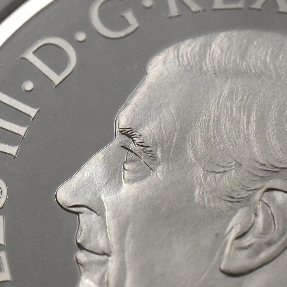 作品表面には、2022年9月の代替わりに際して英国王位を継承したチャールズ3世の「公式第1コイン肖像」が掲げられています。左向きの国王のポートレートからは、愁いを湛えた静寂感のある気品が感じられ、優れた油彩画に見入るような感覚を覚えます。写真のような写実性を見せる同作品は、21世紀初頭を代表するコイン肖像の傑作として、今後長きにわたって高評価を保持し続けることでしょう。栄光の足跡を裏面に刻む同メダルの解禁は、第6弾として先に発表された同メダル表面の意匠と共に、英国貨幣界の新たな伝説として今後脈々と継承されて行くことでしょう。