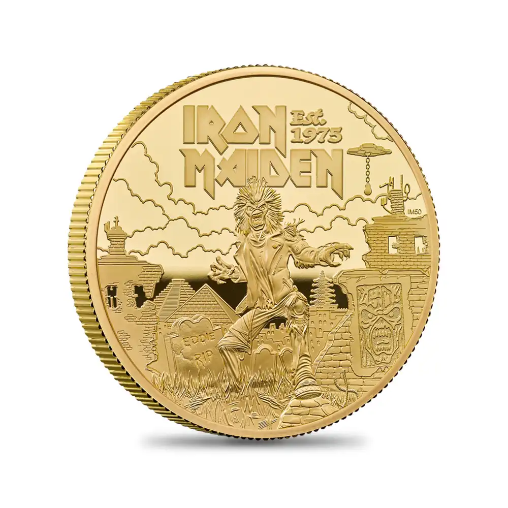 20世紀後半以降、世界を舞台に活躍し高評価を獲得したイギリス出身のポップ音楽やロックミュージシャンたち。彼らの音楽性をコイン上に表現して大成功を収めているのが、ロイヤルミントの名作モダンコインシリーズ「ミュージックレジェンド」に他なりません。これまでに全10作品が発表されていますが、そのどれもが個々のアーティストのカリスマ的な魅力を表現するものであるとともに、音楽の根源的なパワーを感じさせ共感を得ました。多彩なラインアップが現代イギリスの音楽シーンを浮き彫りにするこれらの名作は、実物資産としての将来性はもちろんのこと、モダンコイン屈指の傑作シリーズの一つとしても21世紀のコインコレクターの注目の的となっています。そしてこの度、遂に堂々の第11弾を迎えることとなった同シリーズですが、世界のヘヴィメタル音楽の先駆者ともいえるバンド「アイアン・メイデン」が取り挙げられることとなりました。1980年代初頭のイギリスで誕生したヘヴィメタル音楽の源流である「NWOBHM」(New Wave Of British Heavy Metal) の中心的存在として脚光を浴びた同バンドは、ヘヴィメタル音楽の一大ブームを巻き起こしたことでも知られています。1990年代後半からラインナップが安定し、21世紀に入ってもその人気は衰えを知りません。1975年にセンセーショナルなデビューを果たしたアイアン・メイデンは今年2025年で結成から感動の50周年を迎えます。1980年にはアルバム「Iron Maiden」の発表によってレコードデビューを実現しました。それ以降、好調な売れ行きを記録した同バンドですが、とりわけ1982年発表の「The Number of the Beast」は社会現象となるほどの人気を博し、2000万枚の売り上げを達成しました。バンド名は中世ヨーロッパの拷問器具「鉄の処女」に由来します。我が国日本では東芝EMIがアルバムの紹介を行っていますが、バンド公式の日本語表記がないため同社が規定する「アイアン・メイデン」の表記によって広く知られています。これまでのアルバム総売り上げ数は優に1億枚以上を超えており、同バンド名はヘヴィメタル音楽の代名詞として認知されている感があります。