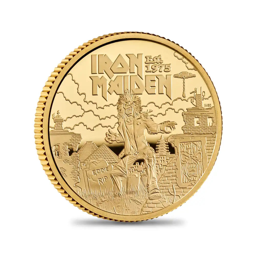 20世紀後半以降、世界を舞台に活躍し高評価を獲得したイギリス出身のポップ音楽やロックミュージシャンたち。彼らの音楽性をコイン上に表現して大成功を収めているのが、ロイヤルミントの名作モダンコインシリーズ「ミュージックレジェンド」に他なりません。これまでに全10作品が発表されていますが、そのどれもが個々のアーティストのカリスマ的な魅力を表現するものであるとともに、音楽の根源的なパワーを感じさせ共感を得ました。多彩なラインアップが現代イギリスの音楽シーンを浮き彫りにするこれらの名作は、実物資産としての将来性はもちろんのこと、モダンコイン屈指の傑作シリーズの一つとしても21世紀のコインコレクターの注目の的となっています。そしてこの度、遂に堂々の第11弾を迎えることとなった同シリーズですが、世界のヘヴィメタル音楽の先駆者ともいえるバンド「アイアン・メイデン」が取り挙げられることとなりました。1980年代初頭のイギリスで誕生したヘヴィメタル音楽の源流である「NWOBHM」(New Wave Of British Heavy Metal) の中心的存在として脚光を浴びた同バンドは、ヘヴィメタル音楽の一大ブームを巻き起こしたことでも知られています。1990年代後半からラインナップが安定し、21世紀に入ってもその人気は衰えを知りません。1975年にセンセーショナルなデビューを果たしたアイアン・メイデンは今年2025年で結成から感動の50周年を迎えます。1980年にはアルバム「Iron Maiden」の発表によってレコードデビューを実現しました。それ以降、好調な売れ行きを記録した同バンドですが、とりわけ1982年発表の「The Number of the Beast」は社会現象となるほどの人気を博し、2000万枚の売り上げを達成しました。バンド名は中世ヨーロッパの拷問器具「鉄の処女」に由来します。我が国日本では東芝EMIがアルバムの紹介を行っていますが、バンド公式の日本語表記がないため同社が規定する「アイアン・メイデン」の表記によって広く知られています。これまでのアルバム総売り上げ数は優に1億枚以上を超えており、同バンド名はヘヴィメタル音楽の代名詞として認知されている感があります。