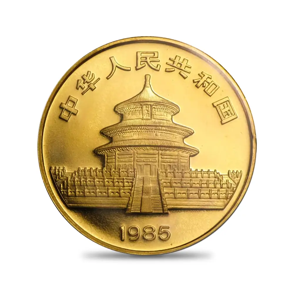 中華人民共和国の造幣公司の発行による同国を代表する地金型コインとして知られるパンダ金貨。1967年発表の南アフリカの「クルーガーランド」や1979年発表のカナダの「メープルリーフ」に次いで古い歴史を持つ1982年の登場となった同金貨は、今や地金型作品の古典として世界的に認知されている傑作です。1オンス、1/2オンス、1/4オンス、1/10オンス、1/20オンスの5種のバリエーションが用意されている同金貨は、今日の市場において最も強力な実物資産の一つとして常に脚光を浴びています。その人気の秘密は偏に表面に描かれた愛くるしいパンダのデザインにあります。中華人民共和国の南部からベトナムにかけて生息するパンダは、これまでにも中国を象徴する動物として世界的に愛されてきました。それは共産主義を逸脱した後の中国の新しいシンボルでもあり、同国のイメージを著しく高めることに貢献してきたといえます。共産党による自由開放政策が推進される遥か昔から、パンダは欧米や日本をはじめとする諸外国に貸し出され、いわゆる「パンダ外交」を展開してきました。そしてそれは功を奏し、国家間の交流の象徴として人々に愛されてきました。動物学的には2種のパンダが存在することは意外と知られていない事実です。「レッサーパンダ」と呼ばれているものは通常我々がよく知るパンダではなく全くの別物で、19世紀の初頭のヨーロッパでは、実際のパンダを観たことのない人々がまだ多かったこともあり、こちらが本物のパンダと認識されていたようです。実際にはこのタイプはアライグマの一種のようなもので、今日われわれが知っているパンダはパンダ科の大型動物の方です。1982年の初発行以来、毎年異なるデザインによってパンダの魅力を多面的に紹介し大きな成功を収めたパンダ地金型金貨シリーズ。さらに2020年以降には子パンダの成長を描く作品が連続的に登場し、こちらも現在のパンダコインの絶大な人気に貢献しています。今回ご紹介させていただくコインは、1985年にリリースされたヴィンテージ品の100元1オンスパンダ金貨です。表面には主食でもある笹の枝にぶら下がって遊ぶ一匹のかわいらしいパンダが描かれており、何とも愛くるしい空気を醸し出しています。そこから想起されるものは、地理的に広大な領土を持つ中国の豊かな大自然ではないでしょうか。国家の尊厳ともいえる動物をこのような理想的な形で再現できる中国の造幣局所属のデザイナーの想像力のずば抜けた力量を感じずにはいられません。コイン裏面には1982年の初お目見え以来同金貨のもう一つの顔として知られる中国北京市随一のランドマークとして知られる「天壇」が描かれています。明王朝の永楽帝が1420年に建立したとされる同市内最大の史跡の一つとして有名な天壇はかつて同王朝から次の清王朝にかけて歴代皇帝たちが国家の五穀豊穣を祈念する場として発展を遂げたと伝えられています。メインの建物である天壇を囲むその広大な敷地は今日「天壇公園」の名によって北京市民の憩いの場として機能しています。現代中国の2つの重要なシンボルを表裏に掲げる当金貨は、実物資産としての将来性はもちろんのこと、高品質を誇る究極のヴィンテージ作品として、また現代中国に対する国際的評価を反映する指標としても極めて魅力的な地金型作品であると断言できます。