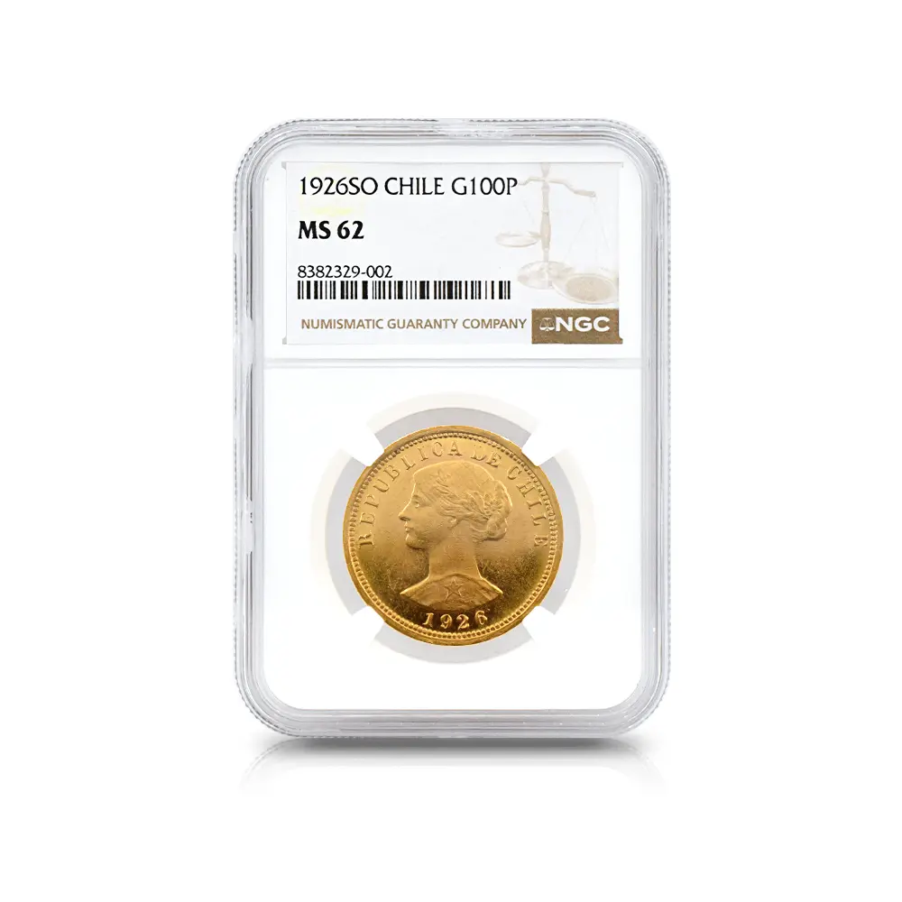 チリ 1926SO 女神 100ペソ金貨 NGC MS62