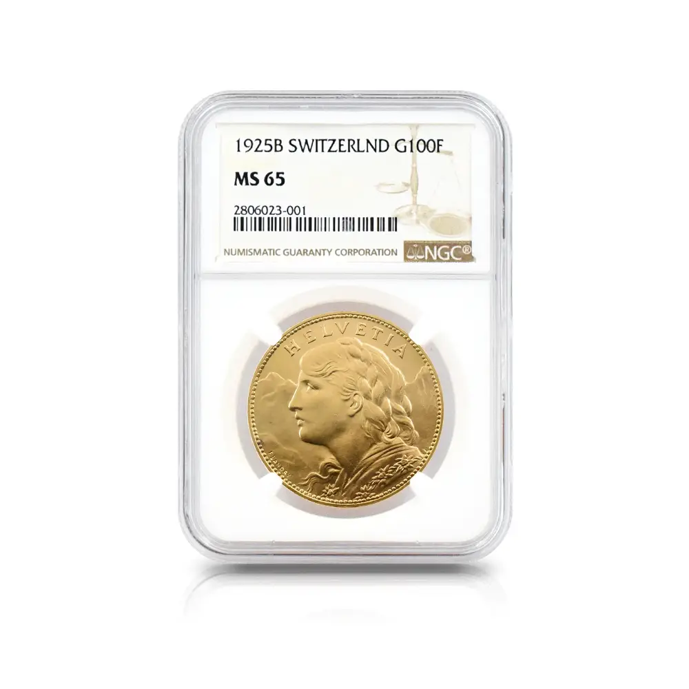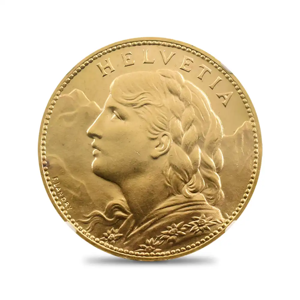 スイス 1925B アルプスと少女 ブレネリ 100フラン金貨 NGC MS65
