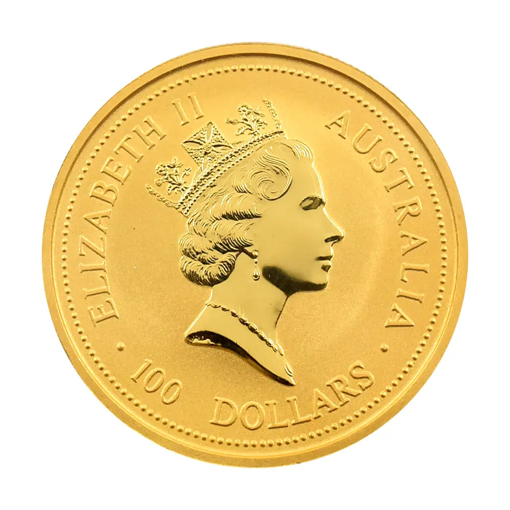 1986年に初登場となったオーストラリア・パース造幣局によるカンガルー金貨。1967年に南アフリカが発表した「クルーガーランド金貨」によって注目された地金型コインですが、それまでは個人が金地金を所有するという風潮がまだ一般的ではなかった時代のことだけに、その人気は凄まじいものでした。その後、1979年にはカナダの「メープルリーフ」、また1987年にはイギリス連合王国が「ブリタニア」、と次々に地金型コインを発表し、このオーストラリアの「カンガルー」を含めて「世界三三大地金型金貨」と呼ばれていた時期もありました。しかしカンガルー金貨の場合、他の作品のように決して派手な魅力が人気を左右していた訳ではありませんでした。大地の主人公である野生動物のカンガルーを裏面に描くそのシンプルな構成はそれまでには無かった種類のもので、オーストラリアの国家の魅力を世界に伝える役割を果たすとともに、地金そのものの価値を決して邪魔することのないシンプルな意匠が、コインコレクターを始めとする世の投資家たちに深い感動を与えました。また毎年新たに変更される見事なデザインと豊富なサイズバリエーションが受け入れられ、地金型コインの代表作としての地位を固めるに至りました。1899年に創設された西オーストラリアのパース造幣局は、1世紀以上の長い歴史を有するオーストラリア最古の造幣機関の一つです。同国がまだ大英帝国の植民地であった19世紀後半に全土で巻き起こったゴールドラッシュの波に乗って、金採掘業者から買い取った金塊を精製してイギリス本国に収めるソブリン金貨とハーフソブリン金貨を製造する役割を果たしていた同造幣局。大英帝国に対する同造幣局の貢献は計り知れず、それによって今日なおも続く名声の基礎を築きました。そして同造幣局のもう一つの顔として今日認知されているのが、1986年から毎年発行されているカンガルー地金型金貨にほかなりません。その後、銀貨やプラチナ貨も発表された同地金型作品ですが、やはり高純度を誇る同金貨に勝る実物資産は無いことと思われます。今回ご紹介の作品は、パースミントが世界に誇るカンガルー地金型100ドル1オンス金貨の1995年度版です。コイン裏面にはオーストラリアの大地に生息するアカカンガルーが描かれています。周囲には中央のカンガルーのデザインを引き立てる効果を生むギザギザが描かれており、何度観ても見応えがあり飽きのこないものです。数万年前からオーストラリア大陸を中心に、タスマニア島やニューギニア島などのオセアニア各地に生息していたとされるカンガルーは、大型のカンガルー、小型のワラビー、樹上性のキノボリカンガルーなどの多彩な種が存在しますが、同じカンガルー属にはオオカンガルーやアカカンガルー、また中間種のワラルーも含まれることから、大型カンガルーとワラビーの分類学的区別は付き難いものとなっています。「カンガルー」の名称そのものは、オーストラリアの先住民族のアボリジニーの言語の一つであるグーグ・イミディル語でクロカンガルーを意味する「gangurru」が語形変化したものと考えられます。元々「跳躍する動物」という意味であったこの語は、カンガルーの運動能力を表す語として興味深いものです。バリエーション豊富なカンガルーですが、太古の昔は大型の種であったことがわかっており、数万年単位での気温の変動の影響を受けて小型化したものが現在のカンガルーであると認識されています。コイン表面には1952年の即位以降、70年以上にわたる長期在位を誇り、2022年9月に惜しまれつつ崩御した故エリザベス2世のコイン肖像が描かれています。女王の頭上を飾るのは19世紀初頭のイギリスに君臨した国王ジョージ4世ゆかりの宝物「ステート・ダイアモンド・ダイアデム」です。1333個ものダイアモンドが煌めくこの世紀の秘宝は、ジョージ4世亡き後は歴代の女王や王妃たち女性王族によって受け継がれてきたいわくつきの宝飾品です。輝かしい黄金色が大地の主人公カンガルーを引き立てる当地金型金貨は、ヴィンテージ品としての風格を感じさせる本格的な地金型作品として、今、21世紀のコレクターの手に委ねられようとしています。
