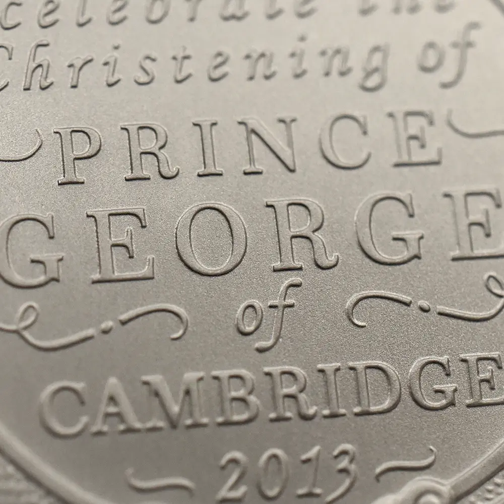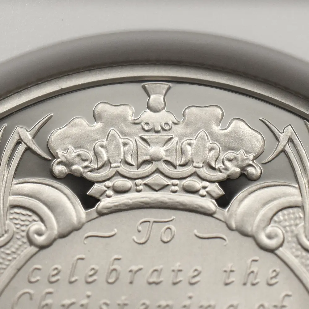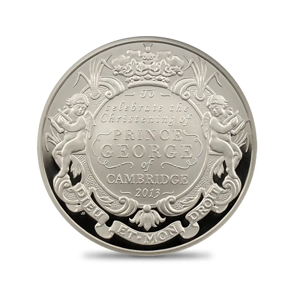 ジョージ王子の誕生を記念してロイヤルミントがリリースした洗礼記念の珍しい5ポンドピエフォー銀貨
