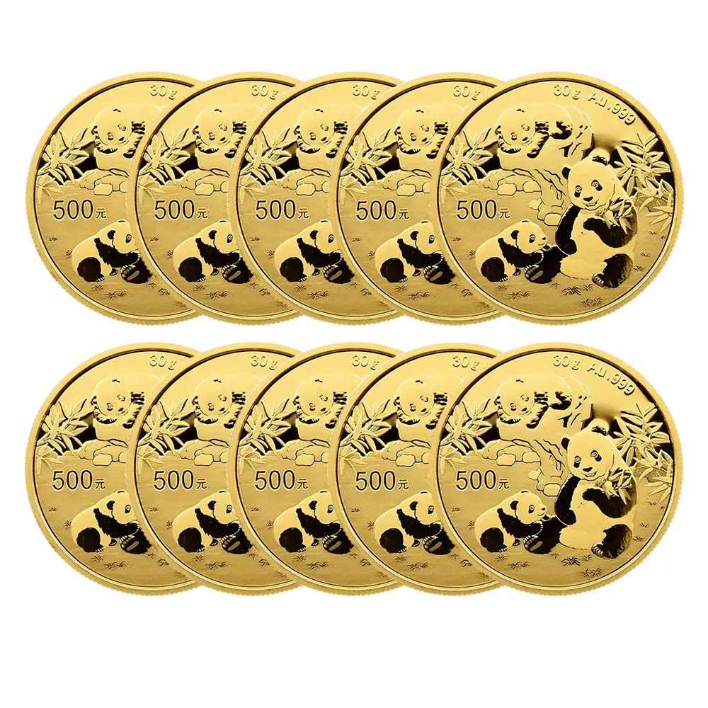 中国 2025 パンダ 500元 30グラム 金貨 【10枚】