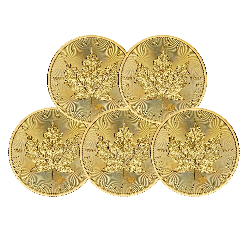 カナダ 2025 チャールズ3世 メイプルリーフ 50ドル 1オンス 地金型金貨 【5枚】 (コインケース付き)