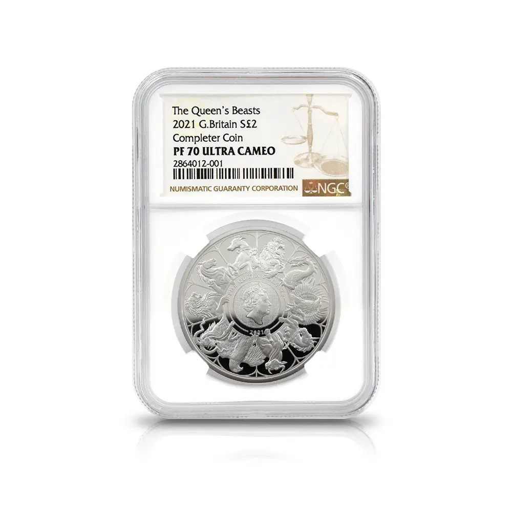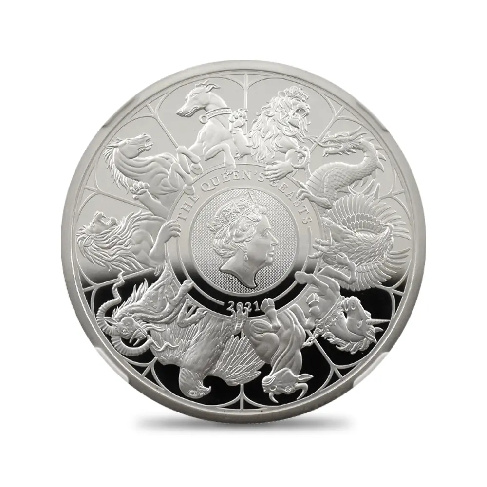 2021 エリザベス2世 クイーンズビースト コンプリーター 英国王室の十大守護獣 2ポンド1オンス銀貨 NGC PF70UC