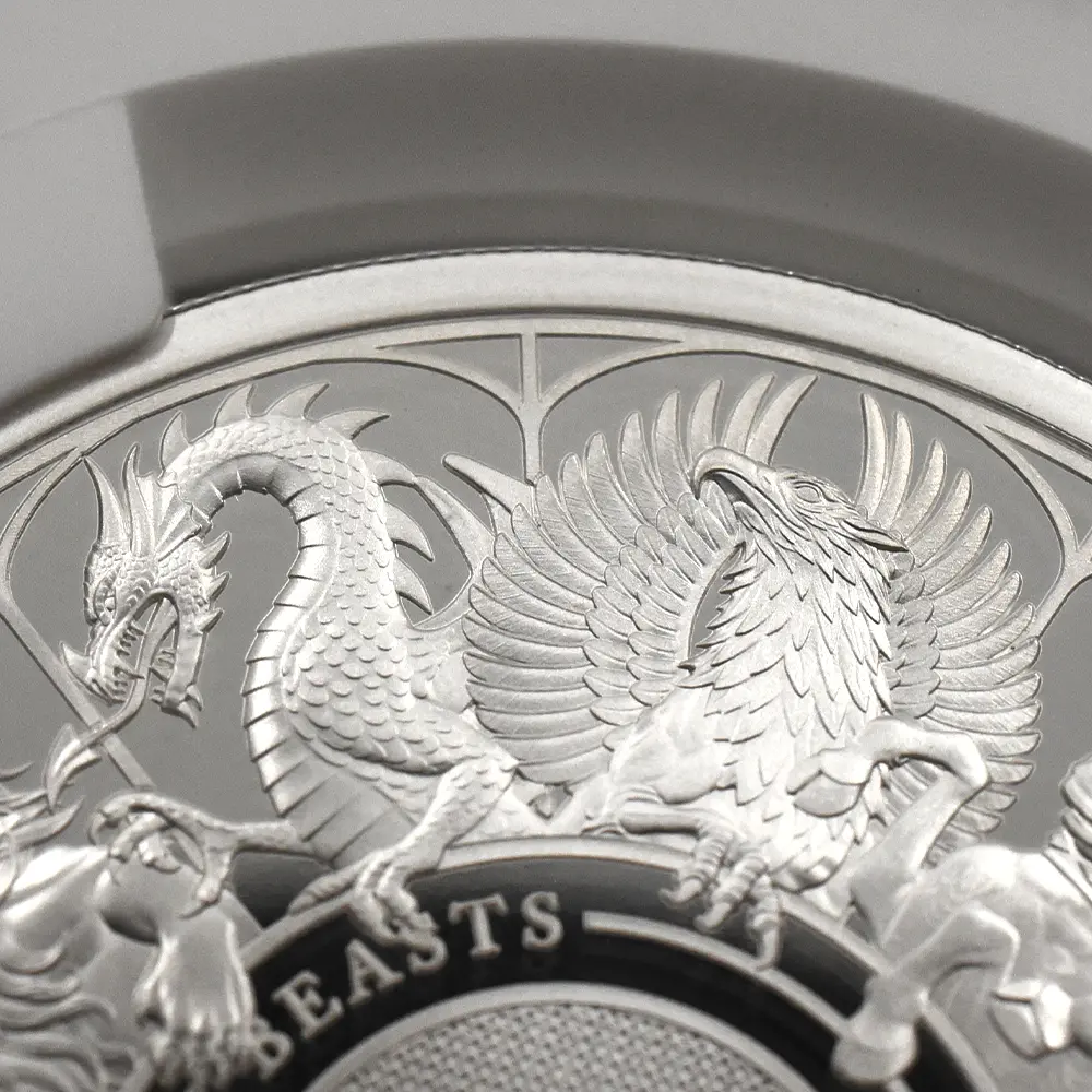 これら10の守護獣は英国王室の象徴であると同時に英国の国家のシンボルでもあります。中世から近世にかけて隆盛を誇ったプランタジネット家を始めとする英国の名家の紋章として生み出された由緒あるこれらの表象は、2種のライオン、雄牛、鷹、馬、グレイハウンド、そして神話上と伝説上の幾つかの生物から成り立っています。当コイン・シリーズは、永遠に愛されるべき英国王室の10の守護獣が一枚のコイン上に描かれたデラックス版として世に贈られる特別の記念品で、今後の世界的高評価は必至であると思われます。英国王室の過去と現在を代表する守護獣たちですが、この感動的なデザインのリリースによって英国王室の栄光の未来に無限の光を投げかけているようです。