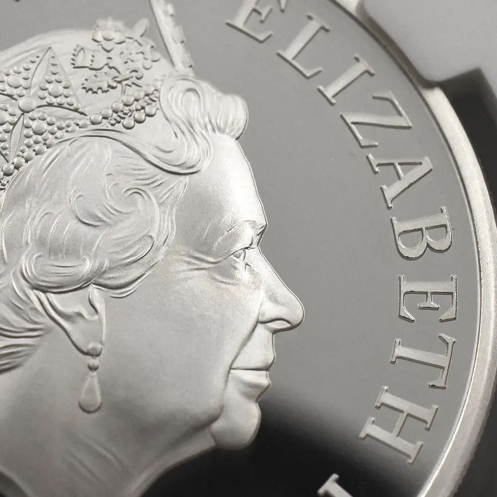大成功を収めた「クイーンズ・ビースト・シリーズ」の掉尾を飾るに相応しい2021年「英国王室の十大守護獣」の一連のコイン・コレクションは、カリスマ性豊かなデザイナー、ジョディー・クラークによる創意工夫の賜物である裏面の意匠によって永遠の生命を与えられました。若くして傑作「エリザベス女王の第5肖像」をロイヤルミントのために制作したジョディーですが、これら10の王室守護獣をコイン裏面に集結させ、それぞれの様式感と権威を表現し尽くした秀逸なデザインは最大級の讃辞に置き換えられるべきです。コイン表面には彼の代表作である女王の「第5肖像」が掲げられていますが、よく見てみますと裏面のコイン中央にも同じ肖像が刻まれており、これらの守護獣と英国王室の数百年来の友好関係を余すところなく表現しています。ロイヤルミントで最も若いデザイナーであるジョディーの天賦の才能は、この新たな傑作の創造によって最円熟期を迎えつつあるようです。