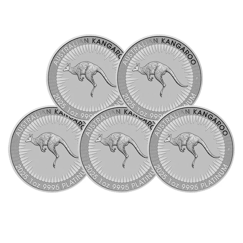 オーストラリア 2025 カンガルー 100ドル 1オンス プラチナ貨 【5枚】 (コインケース付き)