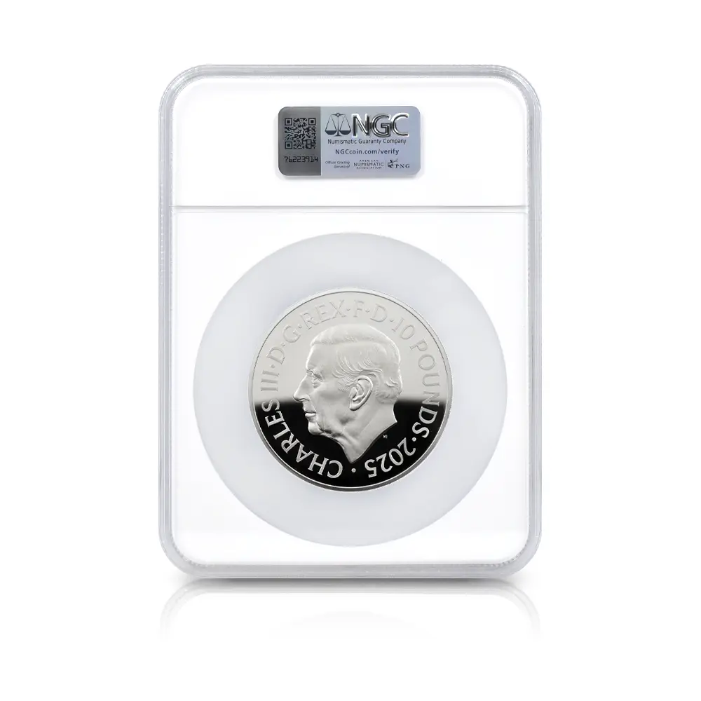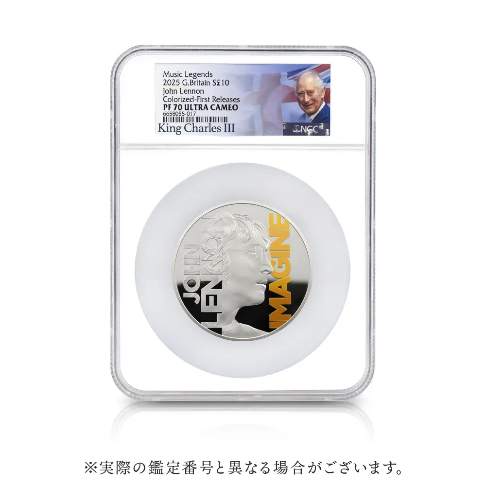 2025 チャールズ3世 ミュージックレジェンド第10弾 ジョン・レノン 10ポンド10オンスプルーフカラー銀貨 ファーストリリース NGC PF70UC 箱付き