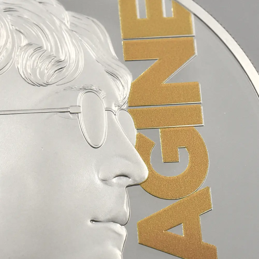 1866年にビートルズが公的な活動を終了した後、同年の11月にレノンはロンドンのインディカ・ギャラリーで開催されていた展覧会の場で二番目の妻となるヨーコ・オノと出会います。美術学校での在籍経験があるレノンは、在学中に東洋文化を専攻していた友人がいたこともあり、オノを通じて日本や東洋文化、とりわけ禅や空の概念に対する造詣を深めます。そしてそれらを色濃く反映するオノの作品に徐々に興味を覚えるようになります。資金提供を通じてレノンとオノは親交を深め、「サージェント・ペパーズ・ロンリー・ハーツ・クラブ・バンド」の録音セッションの間に交際へと進展を見せました。1969年3月にはジブラルタルで挙式を挙げ、オノと新婚旅行で訪問したパリで「ジョンとヨーコのバラード」を書き上げ、続く滞在先のアムステルダムとモントリオールでは有名な「ベッド・イン」という平和活動によって世界的な注目を集めたことで知られています。2020年の英国貨幣界を驚嘆させたモダンコイン・シリーズ「ミュージック・レジェンド」。その後5年の歳月を経て今回ご紹介させていただくコインは、前作に続いて待ち望まれていたビートルズのリーダー、ジョン・レノンを記念コインです。コイン裏面には、トレードマークの丸いロイド型眼鏡が特徴的な若き日のジョン・レノンの横顔が描かれています。そして「ジョン・レノン」のフルネームと共に、ソロ活動後に大ヒットを記録した名曲「イマジン」のタイトルが刻まれています。イギリス出身のポップ・ロック・ミュージシャンの感性をコインに描いて絶賛を博した「ミュージック・レジェンド・コレクション」ですが、第10弾目となるこの度の作品は、同シリーズの中でも特に完成度が高く、レノンの肖像が挿入されている点だけを取っても今後の人気の高まりを予測することが可能です。コイン表面には、2022年の代替わりに際して英国王位を継承したチャールズ3世の無冠左向きの肖像が見られます。現代ロイヤルミントの名匠マーティン・ジェニングスの大作とされるこの優れた肖像は、21世紀前半を代表するコイン肖像として長きにわたって愛されることでしょう。残念ながらレノン自身はその後1980年12月8日にニューヨークの自宅「ダコタハウス」前でファンに射撃され、40年間の短い生涯を閉じました。当コインは、豊かな才能を駆使して多くの楽曲を世に残したジョン・レノンの生き様を反映するコインとして、一層多くのファンを獲得することでしょう。