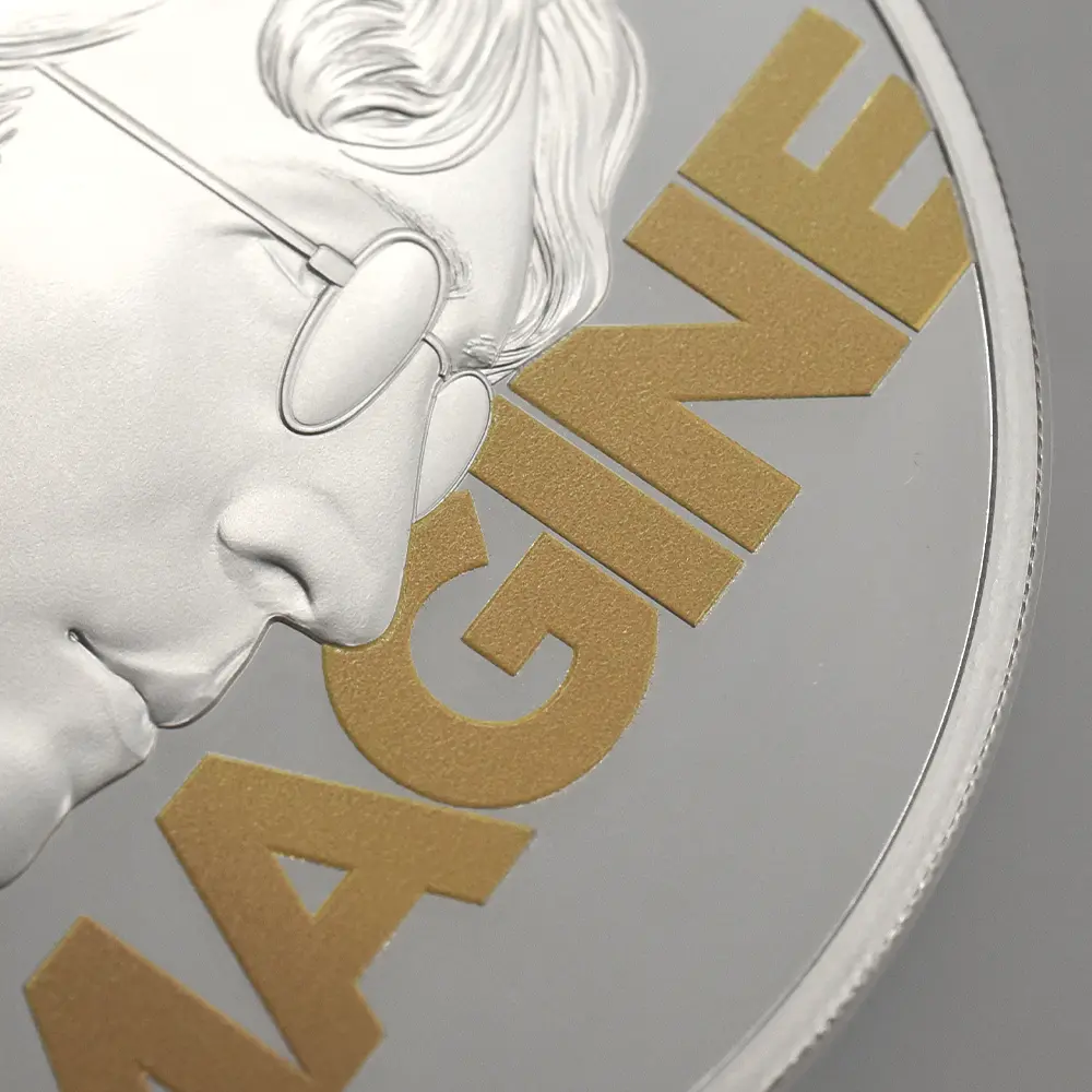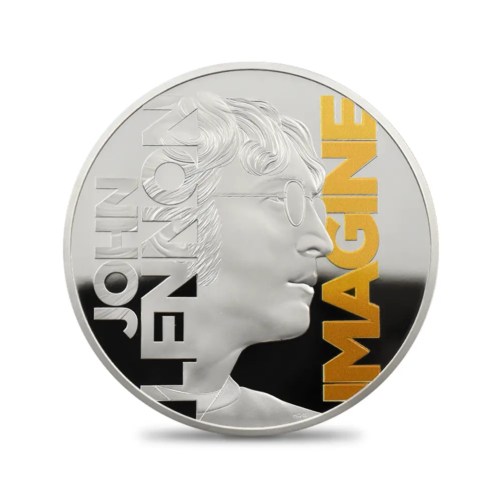 1866年にビートルズが公的な活動を終了した後、同年の11月にレノンはロンドンのインディカ・ギャラリーで開催されていた展覧会の場で二番目の妻となるヨーコ・オノと出会います。美術学校での在籍経験があるレノンは、在学中に東洋文化を専攻していた友人がいたこともあり、オノを通じて日本や東洋文化、とりわけ禅や空の概念に対する造詣を深めます。そしてそれらを色濃く反映するオノの作品に徐々に興味を覚えるようになります。資金提供を通じてレノンとオノは親交を深め、「サージェント・ペパーズ・ロンリー・ハーツ・クラブ・バンド」の録音セッションの間に交際へと進展を見せました。1969年3月にはジブラルタルで挙式を挙げ、オノと新婚旅行で訪問したパリで「ジョンとヨーコのバラード」を書き上げ、続く滞在先のアムステルダムとモントリオールでは有名な「ベッド・イン」という平和活動によって世界的な注目を集めたことで知られています。2020年の英国貨幣界を驚嘆させたモダンコイン・シリーズ「ミュージック・レジェンド」。その後5年の歳月を経て今回ご紹介させていただくコインは、前作に続いて待ち望まれていたビートルズのリーダー、ジョン・レノンを記念コインです。コイン裏面には、トレードマークの丸いロイド型眼鏡が特徴的な若き日のジョン・レノンの横顔が描かれています。そして「ジョン・レノン」のフルネームと共に、ソロ活動後に大ヒットを記録した名曲「イマジン」のタイトルが刻まれています。イギリス出身のポップ・ロック・ミュージシャンの感性をコインに描いて絶賛を博した「ミュージック・レジェンド・コレクション」ですが、第10弾目となるこの度の作品は、同シリーズの中でも特に完成度が高く、レノンの肖像が挿入されている点だけを取っても今後の人気の高まりを予測することが可能です。コイン表面には、2022年の代替わりに際して英国王位を継承したチャールズ3世の無冠左向きの肖像が見られます。現代ロイヤルミントの名匠マーティン・ジェニングスの大作とされるこの優れた肖像は、21世紀前半を代表するコイン肖像として長きにわたって愛されることでしょう。残念ながらレノン自身はその後1980年12月8日にニューヨークの自宅「ダコタハウス」前でファンに射撃され、40年間の短い生涯を閉じました。当コインは、豊かな才能を駆使して多くの楽曲を世に残したジョン・レノンの生き様を反映するコインとして、一層多くのファンを獲得することでしょう。