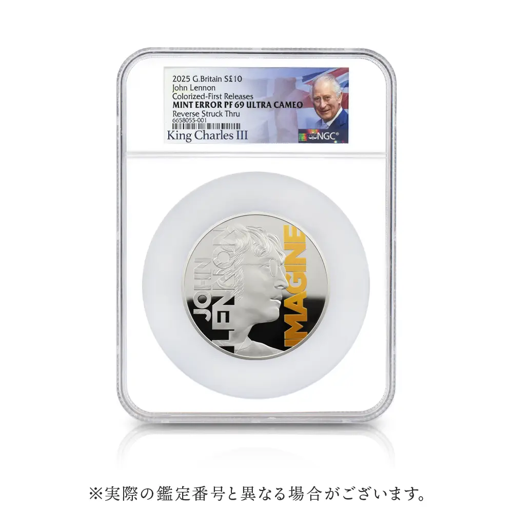 2025 チャールズ3世 ミュージックレジェンド第10弾 ジョン・レノン 10ポンド10オンスプルーフカラー銀貨 ファーストリリース NGC ミントエラー PF69UC 箱付き