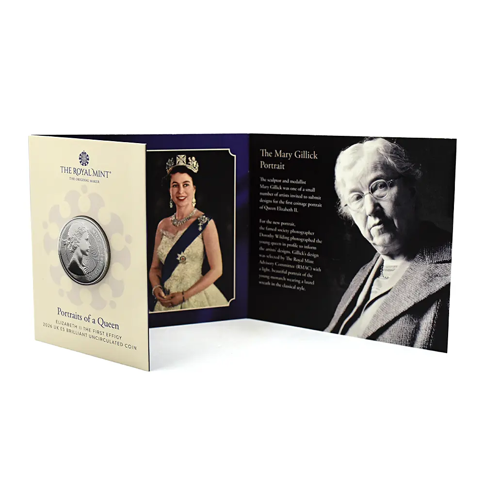 2026 チャールズ3世 エリザベス2世のコイン肖像シリーズ 第一弾 ヤングヤングエリザベス 5ポンドBU白銅貨 未鑑定 パッケージ付き