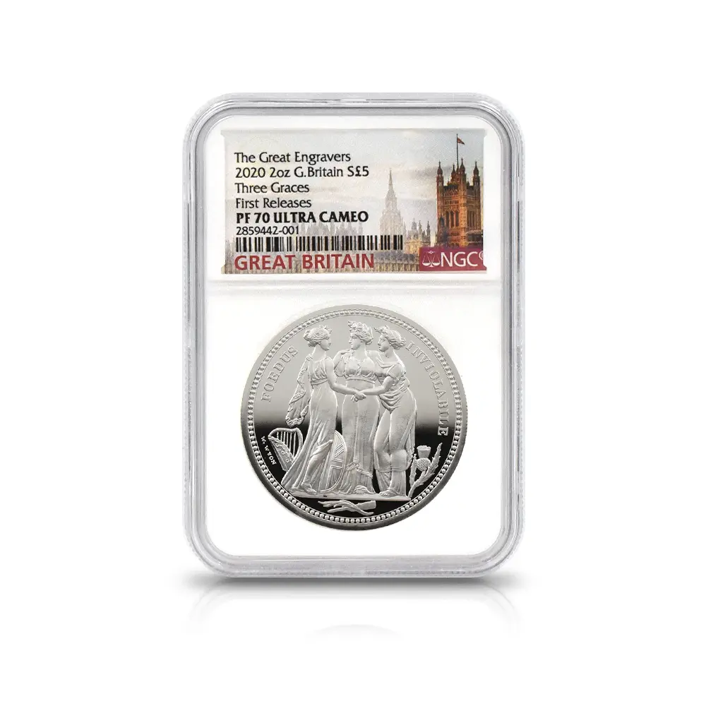 2020 エリザベス2世 スリーグレーセス 5ポンド2オンス銀貨 ファーストリリース NGC PF70UC 箱付き