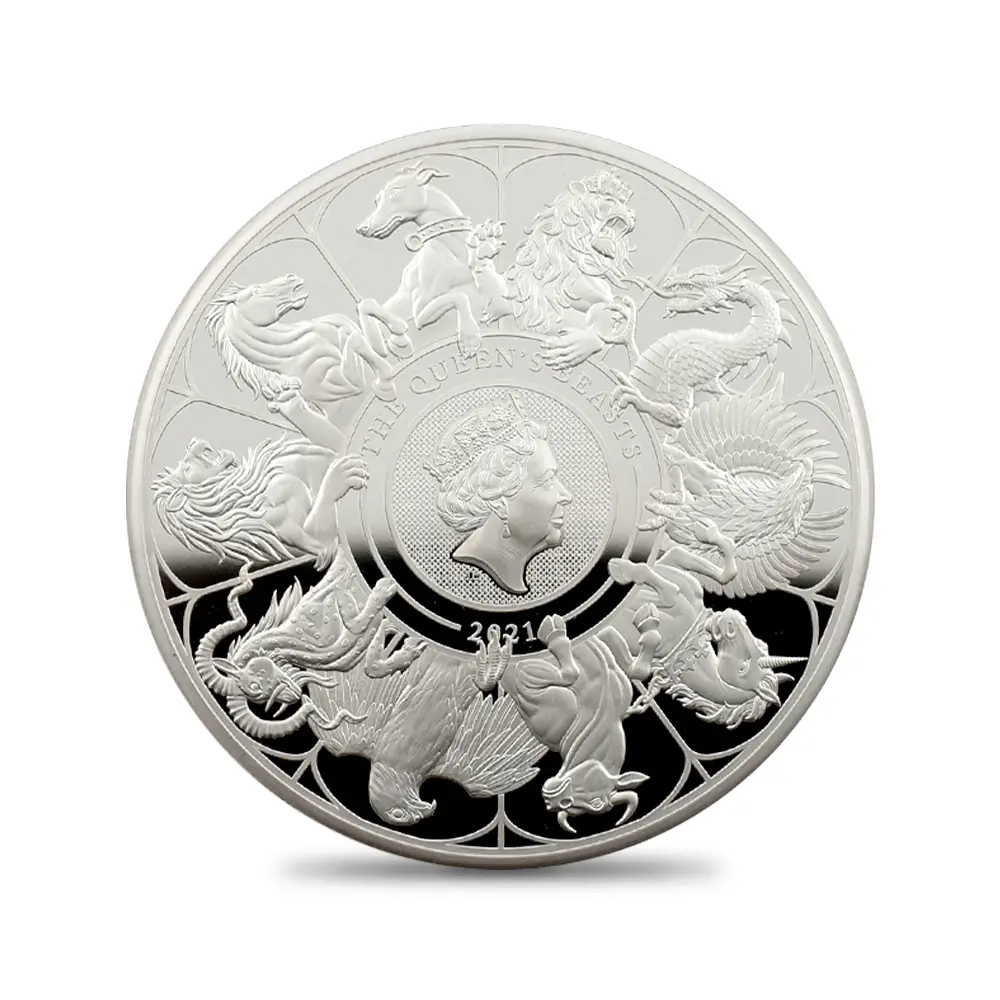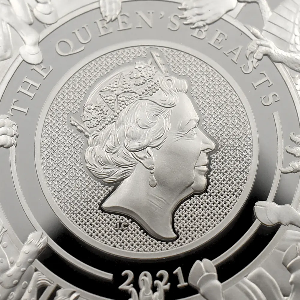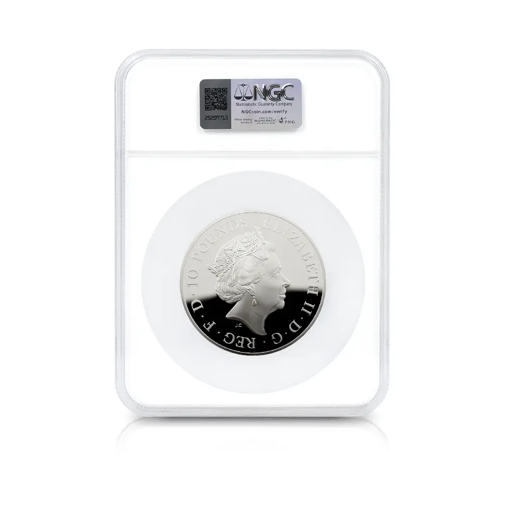 2021 エリザベス2世 クイーンズビースト コンプリーター 英国王室の十大守護獣 10ポンド5オンス銀貨 ファーストリリース NGC PF70UC 箱付き