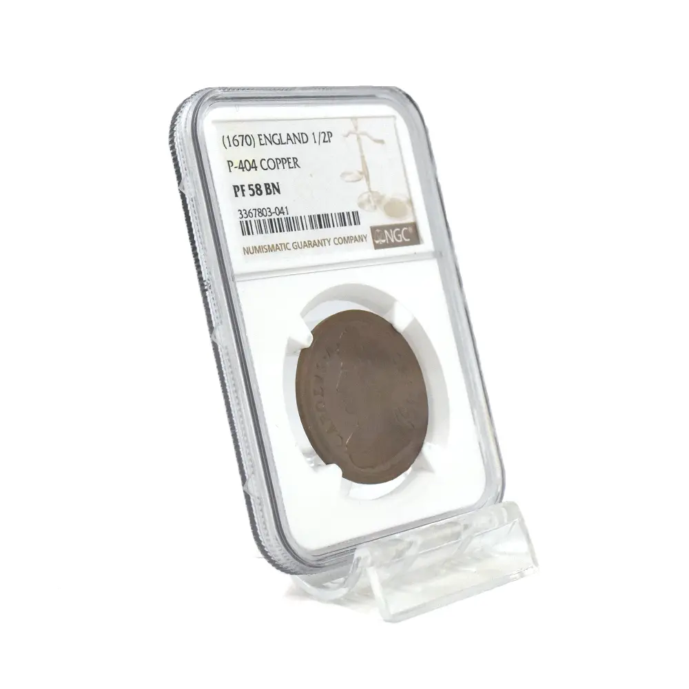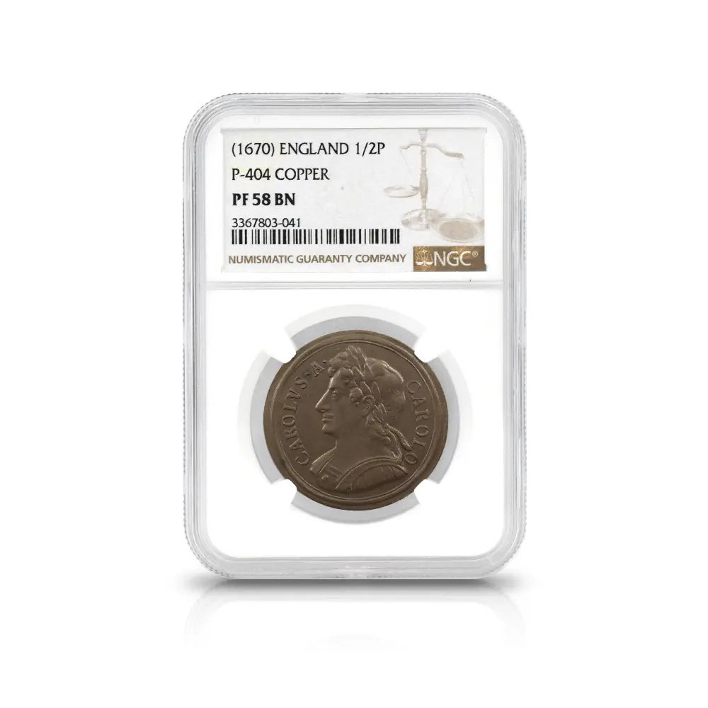 (1670) チャールズ2世 1/2ペニー 銅貨 NGC PF58BN P-404