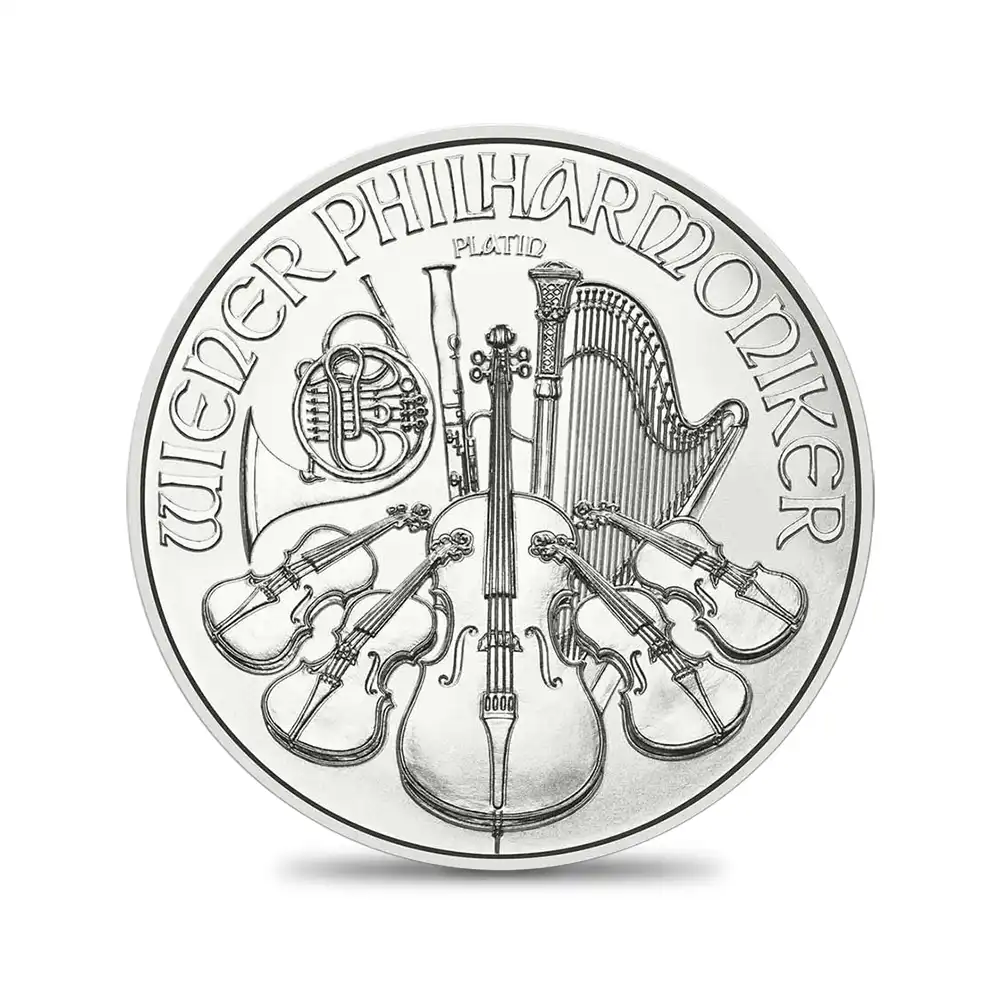 1989年の金貨版の初登場以来、世界の地金型コイン市場において空前の人気を博しているオーストリア造幣局の傑作「ウィーンフィル地金型コイン」。今回ご紹介のコインは、2025年に同造幣局がリリースした100ユーロ1オンス地金型プラチナコインです。デザインは言わずと知れたあのウィーンフィル金貨と同じですが、2025年の西暦が刻まれており新たな時代の幕開けを感じさせます。コイン表面には同楽団を構成する数々の楽器がバランス良く配置されており、オーケストラの多彩な魅力を見事に視覚化しています。裏面には元旦のニューイヤーコンサートの会場としても有名なウィーン楽友協会黄金の間の内部が描かれており、音楽の都ウィーンを訪問したかのような特別な気分を味わわせてくれます。そこには会場の舞台正面にある巨大なパイプオルガンが描かれており、元旦の華やいだ雰囲気をプラチナ上で再現しています。ゴールドと並んで貴重なマテリアルとされるプラチナを用いて制作された当コインは、あらゆる角度からウィーンフィルの輝かしい音色と歴史的な重厚感を表現する研ぎ澄まされた実物資産にほかなりません。