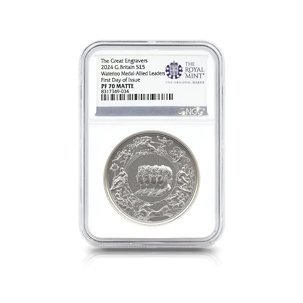 2024 チャールズ3世 ワーテルロー・メダル - 連合国代表 5ポンド2オンス銀貨 マットプルーフ仕上げ 発行即日鑑定品 NGC PF70MATTE