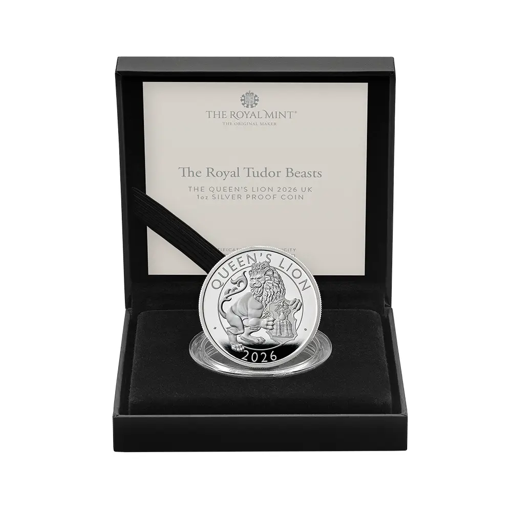 2026 チャールズ3世 ロイヤルテューダービースト 女王のライオン 2ポンド1オンスプルーフ銀貨 未鑑定 箱付き【ご予約承り品】