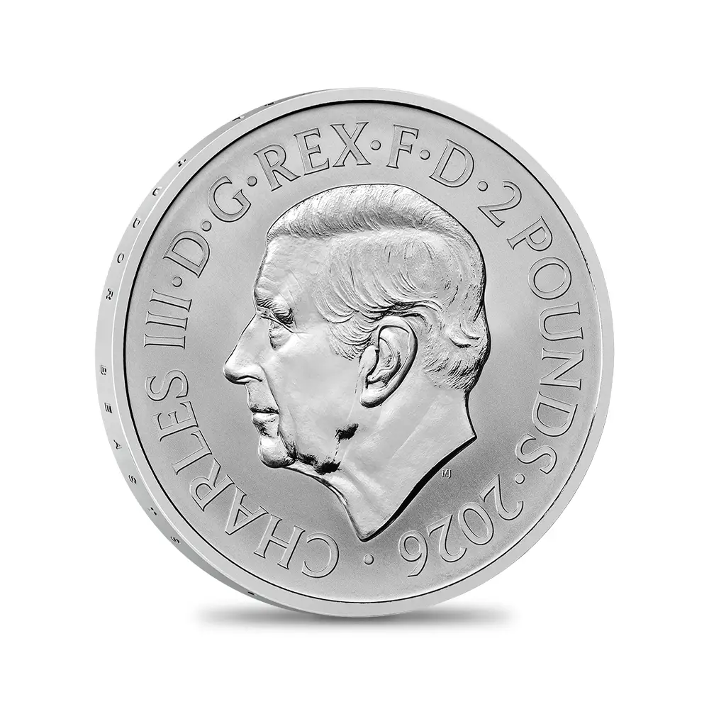 2026 チャールズ3世 ロイヤルテューダービースト 女王のライオン 2ポンド1オンス銀貨2枚セット プルーフ・リバースプルーフ仕上 未鑑定 箱付き【ご予約承り品】
