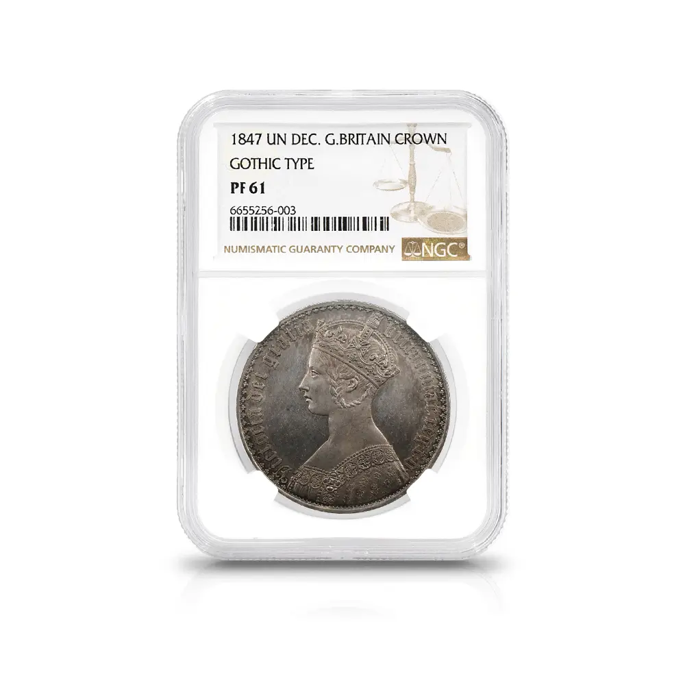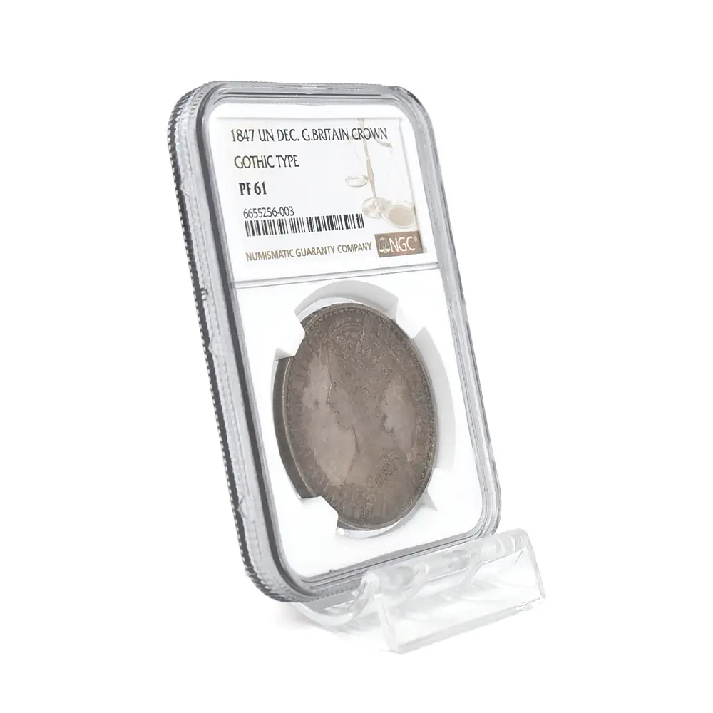 1847 ヴィクトリア女王 ゴチッククラウン銀貨 アンデシモエッジ NGC PF61