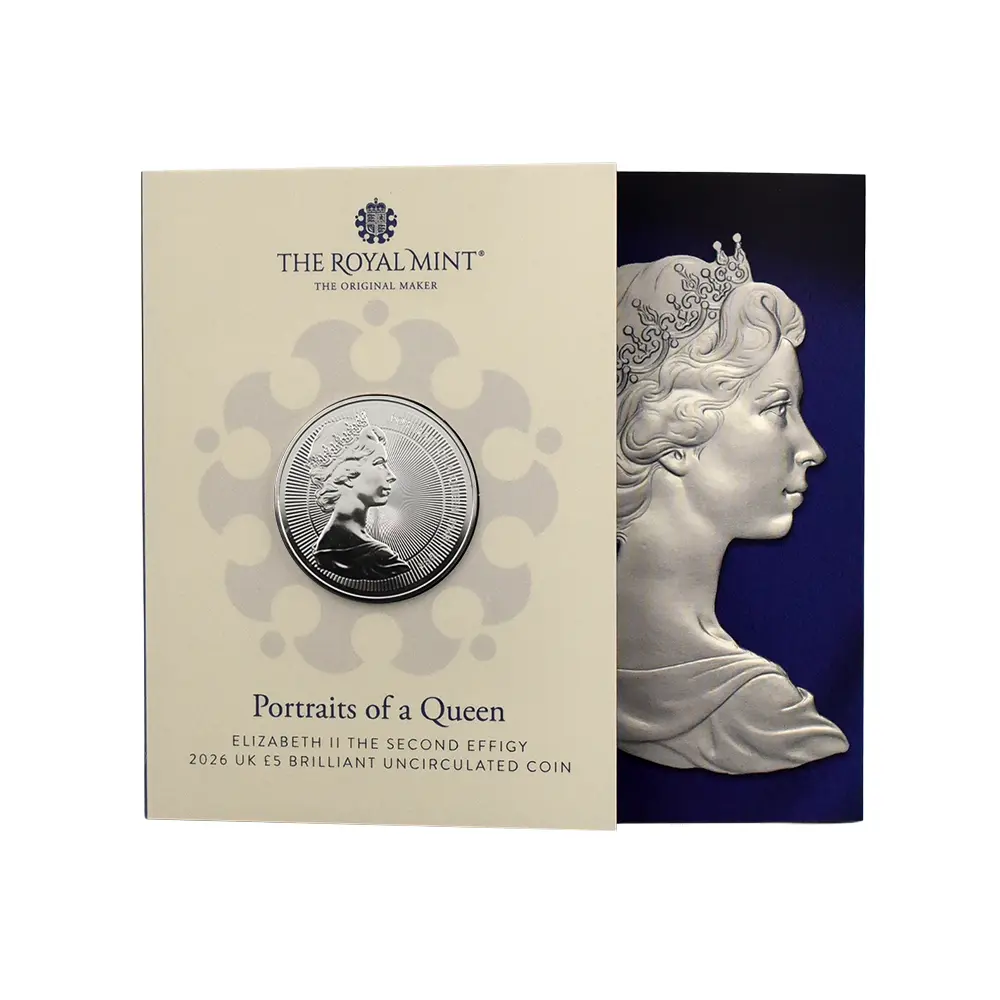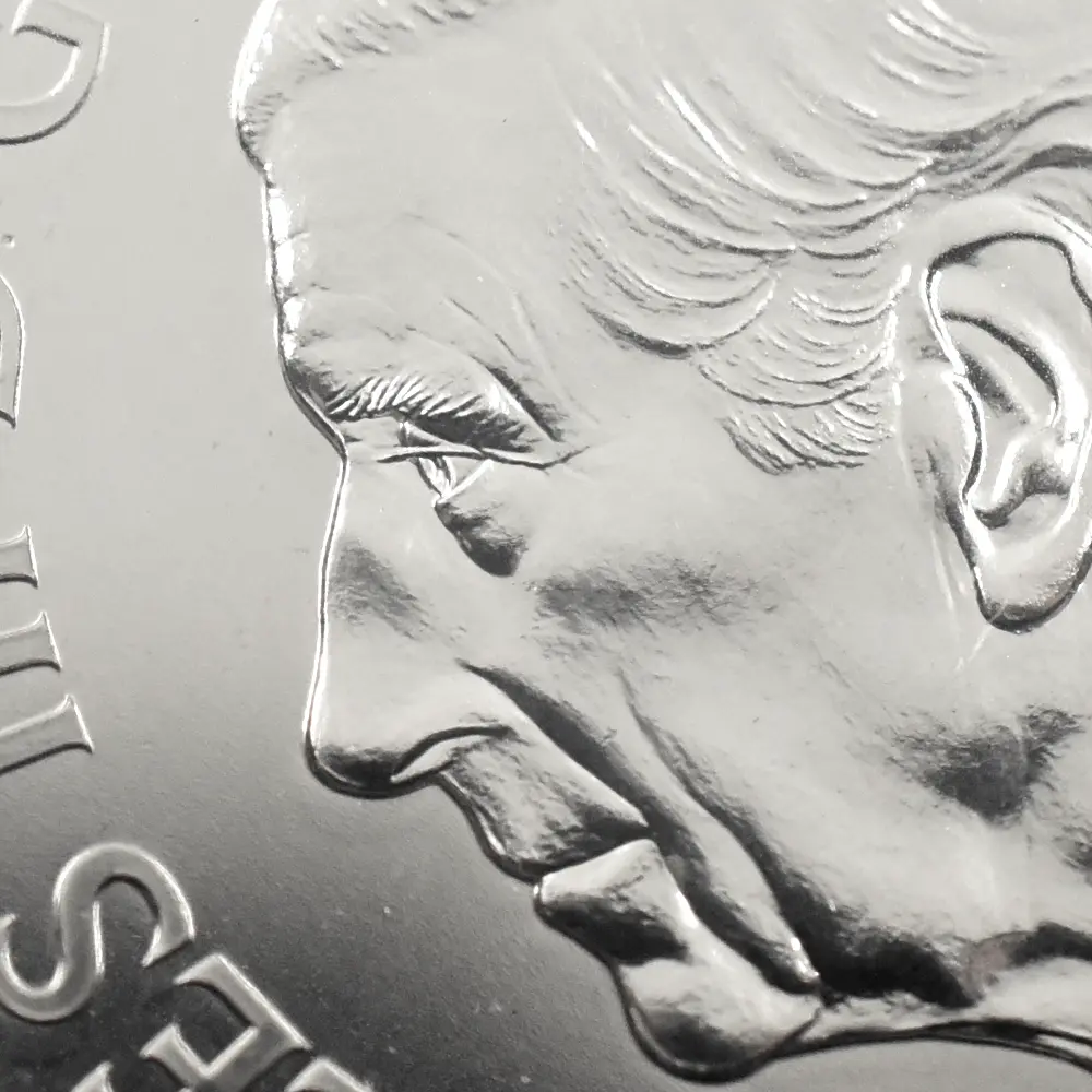 70年以上に及んだエリザベス2世の治世は、第二次世界大戦後のイギリス連合王国が空前の繁栄を体現した未曽有の時代として今なお語り継がれています。1952年の前国王ジョージ6世の急死によって英国王位を継承した女王でしたが、その翌年の戴冠式は正にイギリスの戦後からの脱却を象徴するイベントとして人々に強い印象を与えました。そして英国貨幣界もまた、女王の即位によって新時代のスタートを切りました。戴冠式の年1953年には女王の公式第1肖像「ヤングヤング・エリザベス」が解禁となりましたが、当時若干27歳であった女王の若々しい横顔は連合王国にとっての輝ける未来の象徴であり、また貨幣界にとってはその後70年間にわたって発行され続ける全流通貨の最初の顔でもありました。至ってシンプルな肖像の頭上には王冠の類は見られず、代わりに月桂冠が配されている点が最大の特徴です。1950年代のロイヤルミントを代表する女流彫刻家メアリー・ギリックの晩年の大作に数えられるこの優れた作品は、あどけなさが残る女王の素顔を巧みに映し出した巧みな演出効果を特徴とするものです。続く公式第2コイン肖像が発表されたのは、即位から16年後の1968年の事でした。「ヤングエリザベス」と呼ばれるこの2番目のコイン肖像は、若々しくも成熟した美しさを見せる43歳当時の女王の横顔を浮き彫りにして、得も言われぬ気品を醸し出しています。名コインデザイナー、アーノルド・メイチンによるこの輝かしい作品は、その後、17年間にわたって連合王国の流通貨と記念コインの表面に精彩を与えていました。前肖像との最も大きな違いは女王の年齢のみならず、頭上の装飾品にあります。「大英帝国とアイルランドの少女たちのティアラ」と名付けられた王室コレクション屈指の秘宝は、在世当時の女王が公務などの公式行事の際に最も頻繁に着用していたアクセサリーとして広く知られていますが、この2番目の女王の公式コイン肖像の眼目としてコイン上にて初お目見えとなりました。作者のメイチンですが、。同じく1968年にはイギリス連合王国が発行する切手のための肖像も手掛けたことで著名な人物です。その切手に関してはコイン肖像の流通期間以上の長期にわたって使用されていたことから、今でもエリザベス2世のトレードマークとして記憶されている方も多いことでしょう。コイン肖像に描かれていたティアラですが、1947年に女王がフィリップ殿下との婚礼の際に祖母のメアリー王妃(ジョージ5世妃)から伝授されたもので、元々は1893年のジョージ5世と王妃の婚礼の記念品として、アイルランドの女性のみの慈善団体が寄付金を募ってロンドンの王室御用達宝石商「ガラード」に発注して王妃に献上したとされる由緒ある逸品として知られています。今回ご紹介させていただくコインは、2025年に初登場となった新しいモダンコインシリーズ「エリザベス2世のコイン肖像コレクション」の第2弾として紹介される「ヤングエリザベス」です。裏面全体に大きく引き伸ばされたように再現された公式第2コイン肖像「ヤングエリザベス」の迫力は凄まじく、観るものを深く感動させることでしょう。原作者のアーノルド・メイチンの独創性はそのままに、現代ロイヤルミントの主任彫刻師であるゴードン・サマーズによる入念な仕上げが作品の付加価値となっており、感動もひとしおです。コイン表面には2022年9月のエリザベス2世の崩御に際して英国王位を継承した現イギリス国王チャールズ3世の新しい肖像が描かれています。女王の70年間もの治世下に王太子を務めていた現国王は、誰よりも母エリザベス女王の治世を陰で支え、その歩みを見届けた人物ではなかったかと思われます。そして新国王の時代になり、前国王の功績を称えて公式コイン肖像が次々と紹介されるようになったことは、コインによるエリザベス2世へのオマージュと捉えることも可能かと思われます。美しいヤングヤングが再び日の目を見ることになり、世界に紹介され再評価の対象となる時を迎えたことは英国貨幣界にとっても喜ばしいことに相違ありません。