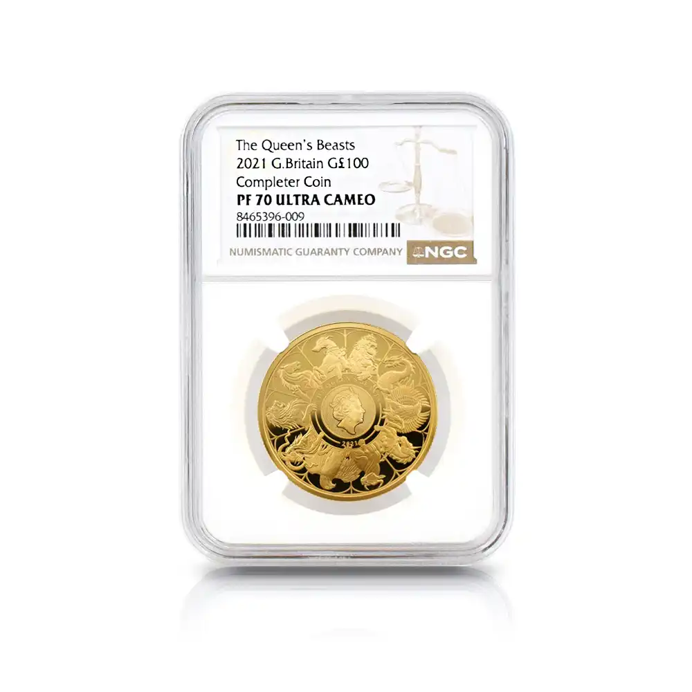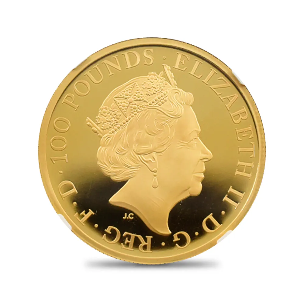 2021 エリザベス2世 クイーンズビースト コンプリーター 英国王室の十大守護獣 100ポンド1オンス金貨 NGC PF70UC 箱付き