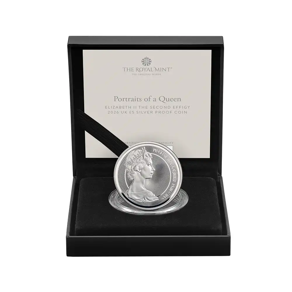 【未鑑定+鑑定オプション付き】2026 チャールズ3世 エリザベス2世のコイン肖像シリーズ 第二弾 ヤングエリザベス 5ポンドプルーフ銀貨 未鑑定 箱付き【ご予約承り品】