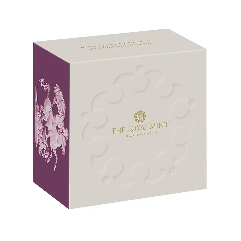 今日イギリス連合王国が発行するコインの中でも最上位に位置するものとして、別格の扱いを受けているのが他でもない「ソブリン」の名によって知られている金貨や銀貨です。その歴史は古く、1489年10月28日にテューダー朝の初代国王ヘンリー7世が自身の即位を記念して上質な金貨の発行を命じたことが始まりでした。しかし、その当時は純金の含有率が時として定まらず、貨幣としての価値の不安定要因となることもありました。そして次のヘンリー8世の時代には、ソブリン金貨の金含有率は22金に設定され、再びイギリスの法定金貨としての権威を取り戻します。大航海時代の真っただ中にあったイングランドは、対外的な貿易の決済通貨としてこのソブリンを用いていましたが、ことヨーロッパ諸国におけるイングランドの発行によるソブリンの評価は高く、最も信頼のおける通貨として重用されていました。その後、テューダー朝も後期に差し掛かり、エリザベス2世の時代を迎えますが、生涯独身を貫いた女王には継嗣がいなかったため、イングランドの王位継承権を持つスコットランドのジェームズ6世がイングランド国王ジェームズ1世として即位します。それまではイングランドにとって最も重要な法定金貨であったソブリンは新国王の命によって廃止され、1604年にはイングランドとスコットランド両国の統一を願って名付けられたユナイト金貨が発行されるようになります。その後、200年以上もの長きにわたってソブリンと呼ばれるコインが発行されることはありませんでしたが、19世紀初頭には思いがけなくこの名を冠する貨幣が復活することになります。そのきっかけとなったのは、19世紀初頭のヨーロッパ全土を震撼させたナポレオン戦争でした。ナポレオン戦争の終盤戦に当たる1815年のワーテルローの戦いにおいて大勝利を収めた英国軍でしたが、国内の経済状況は混迷を極めており、それを解消すべく新たな貨幣制度が導入されることになります。金本位制を主軸とするこの新しい解決策は直ちに採用され、新たな貨幣の制作が急がれます。英国経済を復活させる目的で考案された新しい金貨には、200年以上前に一旦貨幣界から姿を消していた「ソブリン」の名が再び与えられ、1ポンド貨幣と等価の通貨として採用されることになりました。それ以降、この復活した新生ソブリン金貨は歴代君主の治世を象徴する最上位の貨幣として、今日まで脈々と受け継がれています。最近まではソブリンといいますと金貨が主流と受け止められていた感がありますが、2025年にはソブリンの名のもとに史上初の銀貨が発行され、コレクターを中心として高い人気を獲得しています。ジョージ3世の治世後期の1817年に初発行となった新生ソブリンの第一号の裏面を飾ったのは、今もなおソブリン貨裏面の定番のデザインとして継承されているベネデット・ピストゥルッチ作の有名な「聖ジョージの竜退治」です。古代ローマ時代に実在した殉教者ゲオルギウス(英語名はジョージ)が馬上から悪を暗示するドラゴンを槍で一撃の如く退治する名シーンを描くこの意匠は、英国貨幣界における真の傑作として、歴代ソブリン貨を始め、その他、数多くの英国コインの題材として愛され続けてきました。今回ご紹介させていただく作品は、19世紀初頭に奇跡的に復活したソブリン金貨の歴史を記念して世に贈られる現代の伝説です。コイン裏面には定番の聖ジョージのデザインが掲げられていますが、何度見ても飽きの来ない純粋な美しさに再び心を奪われる方も多いことでしょう。コイン表面には、2022年の代替わりに際して王位を継承した現イギリス国王チャールズ3世の公式第1肖像が刻まれています。「君主」を意味する語であるソブリンの名を与えられた貨幣は国王の治世の安泰を願って代々発行されてきましたが、その集大成ともいえる記念コインがチャールズ3世の御代に発表されることは極めて意義の深いことです。ここにモダンコイン屈指の傑作が誕生したことを嬉しく思うとともに、ロイヤルミントを頂点に戴く英国貨幣界の更なる発展を願わんばかりです。