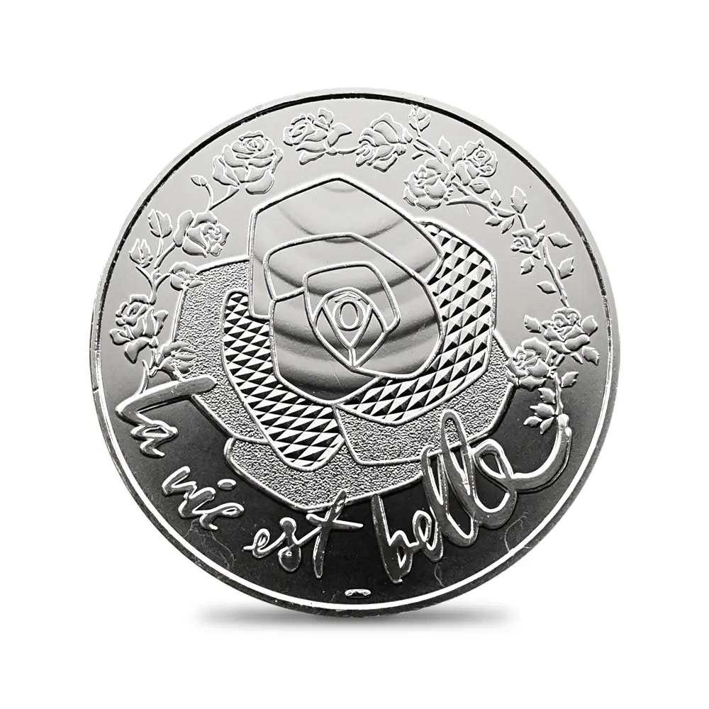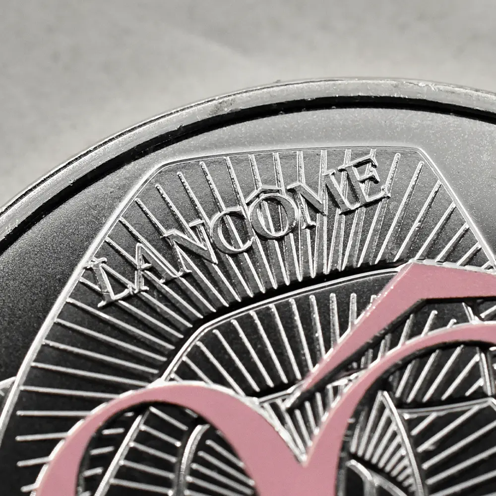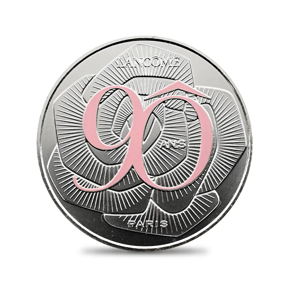 2014年にパリ造幣局が創始した「フランスの卓越シリーズ」は、フランス政府がこれまで国家産業として後援してきた世界的なブランドや伝統文化に敬意を表す新時代のコインコレクションです。同コレクションに含まれるテーマは多岐にわたり、高級クリスタルメーカーの「バカラ」やブルボン王朝時代にさかのぼる長い歴史を有する「セーブル焼」などの伝統工芸分野、またディオールを始めとするいわゆるパリ・コレクションに属する一流ブランド、フランス料理界の重鎮「ギィ・サヴォワ」、そしてフランスが世界に誇る「ルーブル美術館」などが過去に取り挙げられ話題を呼びました。これらのテーマに共通するのは、王朝時代からナポレオンの時代を経て現代に至るまで時代は変われど、フランスがこれら有形無形のテーマを国家が保護すべき文化財と見なしていたことではないかと思われます。シリーズ全体としての成功を収めた感の強い「フランスの卓越シリーズ」ですが、それらの中でも2021年の発表されたディオール関連のコインは、コインの枠を超えた純粋な芸術性と遊び心によって、フランス芸術の奥ゆかしさを世に知らしめた傑作として記憶されています。同社のベストセラー香水「ミス・ディオール」のボトルから着想を得た本作品は、史上初のリボン型コインとして紹介されましたが、ディオール社の洗練されたブランドイメージを現代的感性によってポップに表現し、好評を博しました。第二次世界大戦の荒廃の中から生まれた同社のパリのブティックは、不世出のクチュリエ、クリスチャン・ディオール(1905-1957) によって後に世界有数の名店としての評価を確立します。ディオールが1947年にパリにデビューするまでの世の女性のファッションは、用途によって着用する服のタイプが決まっていたため、好きな服を場面に関係なく選択する自由が制限されていたのが当時の実状でした。ディオールが求めた真に自立した女性のための服は、世界中の女性のファッションに対する根本的な理想を体現するものとして広く受け入れられました。ディオールのみに限らず、「フランスの卓越シリーズ」に含まれる全てのテーマには個別の歴史が秘められており、時空を超越して次世代に継承されるに足る付加価値となっている点を無視することはできません。今回ご紹介させていただく作品は、2025年に創業90周年を迎えたばかりのフランスが世界に誇るコスメティック・ブランドのランコムにスポットを当てる特製メダルです。1935年創業の同社は、数多くのヒット作を生み出したブランドとして有名ですが、特に1938年に口紅の販売を開始して以降、「ルージュ・アブソリュ」を始めとする定番商品の驚異的な販売実績を記録しています。当メダル表面には、創業90周年を迎えたばかりのランコム社のこれまでの功績を称えて「90」の数字が刻まれています。数字の背景となっているのは、同社のシンボルでもある大輪の薔薇の意匠です。メダル裏面にも大小様々な薔薇の花が咲き乱れているため、表裏共に薔薇尽くしの感があります。裏面の標語は「La vie est belle」とフランス語で刻まれていますが、これは「人生は美しい」という意味です。ランコム社の創業90周年に祝意を寄せるフランス最古のパリ造幣局の歓喜が伝わってくる当メダルのデザインは、文化・芸術大国フランスならではの審美性と現代的革新性を世界に発信する厳選されたメダル作品として、今後一層の高評価を獲得することでしょう。