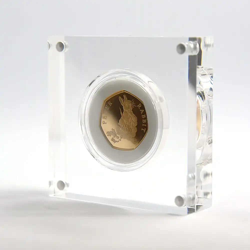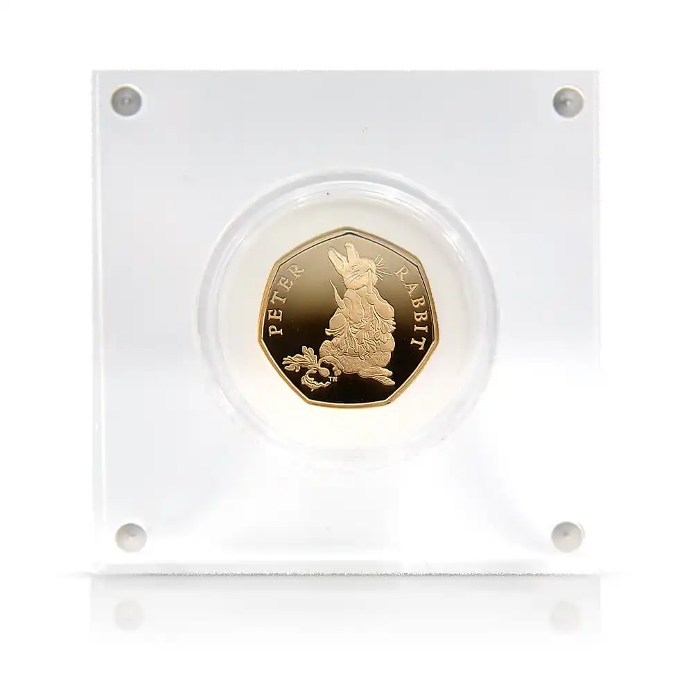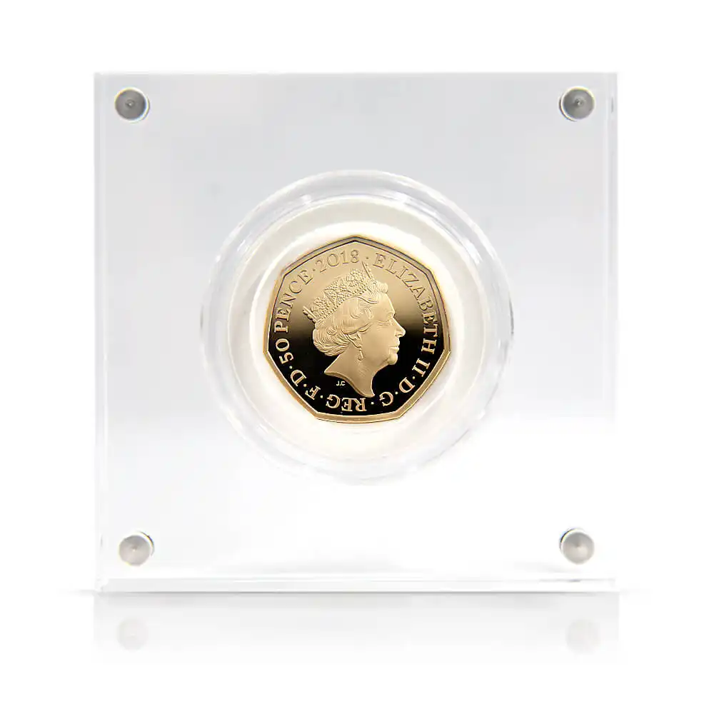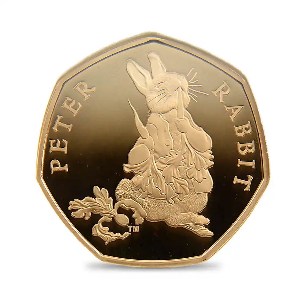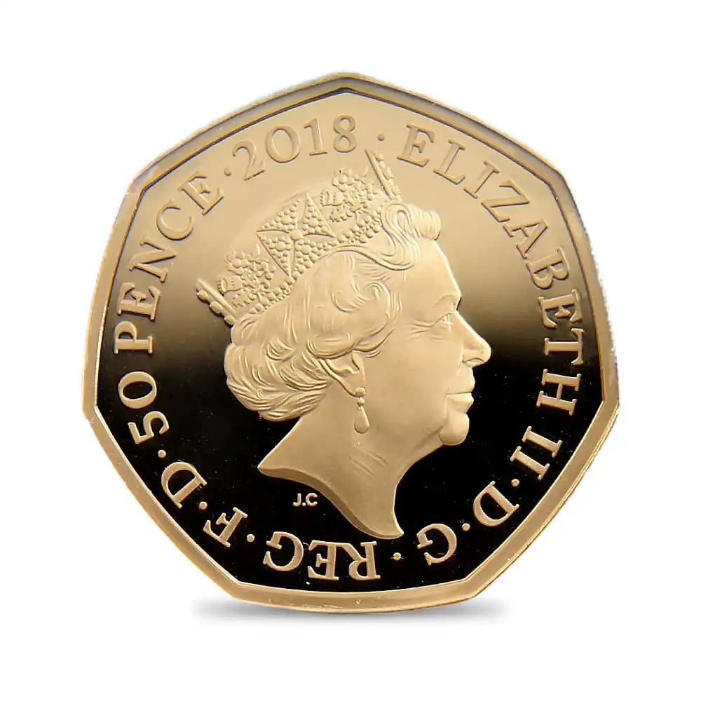 2018年の発行によって誕生したピーターラビットを裏面に描く当コインは、どこか懐かしさと温かさを感じさせるモダンコインの名作です。コイン上に描かれることによって現代によみがえったピーターラビットの意匠ですが、思わず振り向かずにはいられない表情と姿、田舎道に佇む好奇心旺盛なうさぎのピーターは、観る者の感性を刺激し、想像力を掻き立てるものがあります。作中にて描写されているピーターを中心とする田舎での生活は、英国人の普段の生活に見られる自然崇拝や郷土愛を暗示するものであり、我々を惹きつけて止みません。懐かしさと幸福感を同時に感じさせる当コイン上のピーターラビットのデザインは、過去には英国のみならず、全世界的規模にて一世紀以上にわたって愛され続け、珠玉の作品として受け継がれて来た不朽の名作の待望のコインデザインです。是非ともコインを手にされ、大自然の恵みと共に数百年の歴史を築き上げて来た英国人の郷土愛と自然回帰の理想を表出する擬人化された動物が繰り広げる独自の世界観を心ゆくまでご堪能ください。