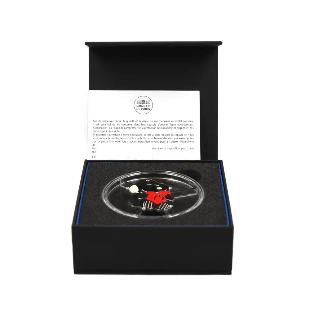 フランス 2025 『ピーナッツ』 75周年記念 スヌーピー 10ユーロ スヌーピー型プルーフカラー銀貨 未鑑定 箱付き
