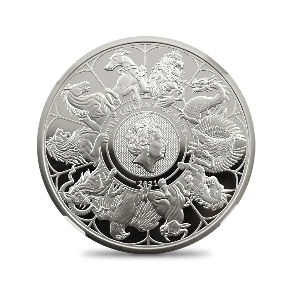 2021 エリザベス2世 クイーンズビースト コンプリーター 英国王室の十大守護獣 2ポンド1オンス銀貨 NGC PF70UC