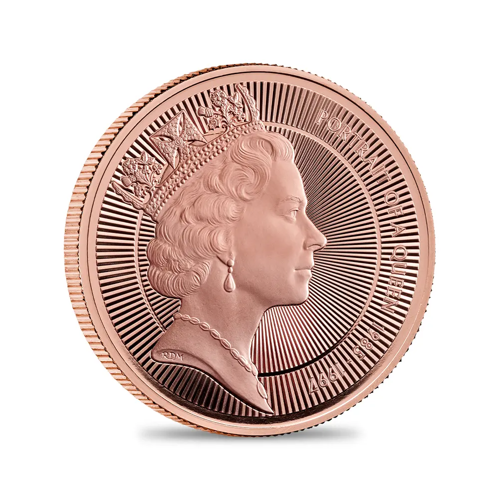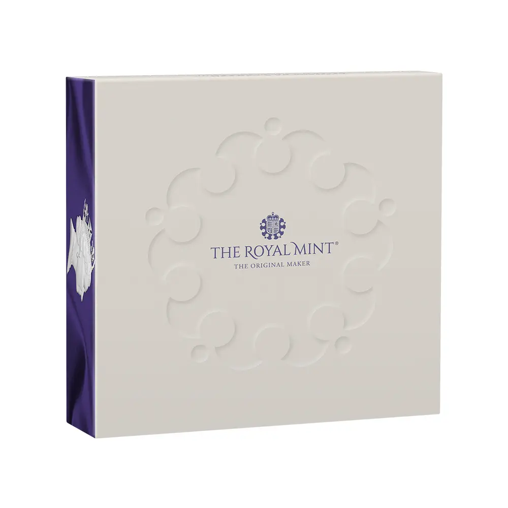 2022年9月8日に惜しまれつつ崩御されたエリザベス2世。その偉大なる功績は、数えきれないほど遂行された公務や海外訪問によって世界中の人々の記憶に深く刻まれるに至りました。思えばその70年の年月は、かつての大英帝国が新生イギリス連合王国として世界に踏み出し、戦後の混乱の後に未曽有の発展を遂げた特別な時節でもありました。イギリス王室のあるべき姿を国民と共に模索し、より親しまれる王室像を確立したのもエリザベス2世の治世下においてでした。女王は戦後の幕開けと共に即位しましたが、その後の70年間はテレビを始めとする各種テクノロジーの発展期に当たり、世界に対峙する女王の姿はそれらを通じて永遠に記録されることとなりました。そして70年間の在位期間の変遷を何よりも雄弁に物語り、時代の移り変わりを女王の美しいポートレートで表現するものとして、イギリス連合王国内にて流通していた各種コインに代わるものは無いことでしょう。1952年に父王ジョージ6世の崩御に際して王位を継承した女王でしたが、その翌年には公式第1コイン肖像「ヤングヤング・エリザベス」を表面に掲げる美しいコインが日の目を見ました。20代後半に差し掛かったばかりの女王の姿は若々しさと共に得も言われぬ気品を感じさせるものであり、その後の長期在位の始まりを告げるに相応しいものではなかったかと思われます。未だあどけなさの残るその瑞々しい横顔からは同時にイギリス君主としての自負心をも感じられ、連合王国の臣民のみならず世界中の人々を深く感動させました。1950年代を代表する女流彫刻家メアリー・ギリック最晩年の傑作に数えられるこの優れたポートレートは、女王の夫のエディンバラ公爵の助言を経て磨き抜かれ、今日われわれが目にする外観となったとの逸話が残っています。1968年に発表されたいわゆる公式第2コイン肖像は、「ヤング・エリザベス」の通称で親しまれている傑作コインポートレートです。42歳の時の未だ若々しい女王の姿を映し出すこの肖像は、ロイヤルミントの才人アーノルド・メイチンの美意識が遺憾なく発揮された最高度の芸術作品として今なお高く評価されています。そしてそれに続く女王のコインポートレートとして発表されたのが、1985年の公式第3コイン肖像「ミドル・エリザベス」でした。当時新進気鋭の彫刻家としてロイヤルミントで活躍していたラファエル・マクロウフの代表作として知られるこの流麗なコイン肖像は、中年期の女王の威厳を映し出す鏡のような作品です。過去の二作とは全く異なるアプローチによって成功を収めたものであり、何よりも君主としての女王に焦点を当てた大作として存在感を発揮しています。今回ご紹介させていただく作品は、2025年に発表となった前2作に続く第三弾としてリリースされるモダンコインとしての「ミドル・エリザベス」です。「エリザベス2世のポートレートコレクション」の名の下に全5種の公式コイン肖像を紹介する予定の当シリーズは、これまでにも大成功を収めてきましたが、今回のミドル・エリザベスの解禁によって真に偉大なる伝説となった感があります。女王の頭上に輝くのは、19世紀初頭の英国王ジョージ4世ゆかりの秘宝「ステート・ダイアモンド・ダイアデム」です。生前公務の際に女王が着用する機会が最も多かったこの宝飾品は、1821年にロンドンのウェストミンスター寺院にて挙行されたジョージ4世の戴冠式のために王室御用達宝石商ガラードが制作したと伝えられています。ミドル・エリザベスのトレードマークでもあるこのダイアデムは、当コインの絶対的な付加価値であると捉えることもできます。あと二作続く予定の当コインシリーズですが、当作品が加わったことによってよりコレクションとしての重厚感が感じられるようになりました。今日の貨幣界において目白押しのエリザベス2世関連の追悼コインの中でも最も輝かしい真の傑作の満を持しての登場を喜ばずにはいられません。