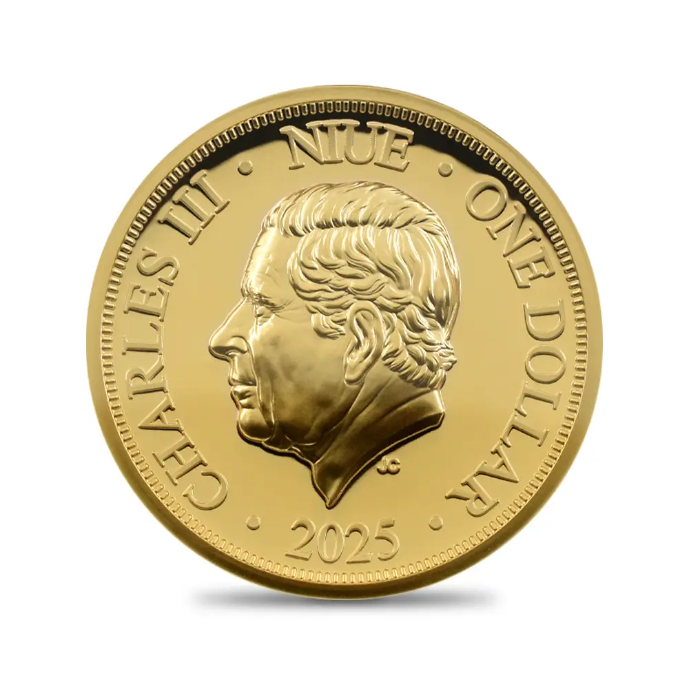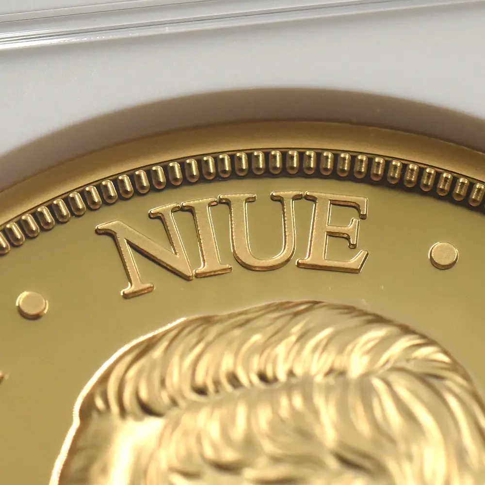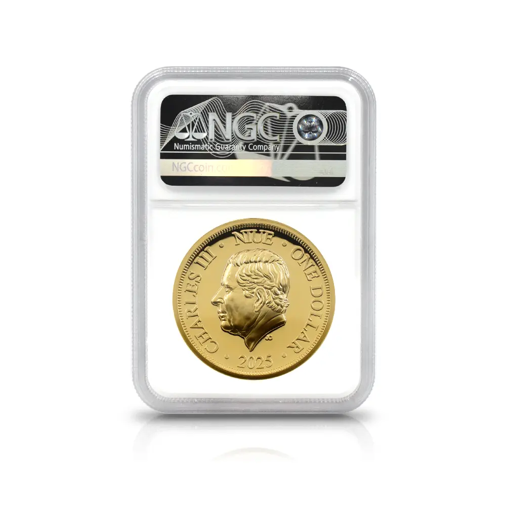 ニウエ 2025 チャールズ3世 女王エリザベス2世追悼記念 ハイレリーフ 1ドル金メッキ銅貨 ファーストリリース NGC PF69UC