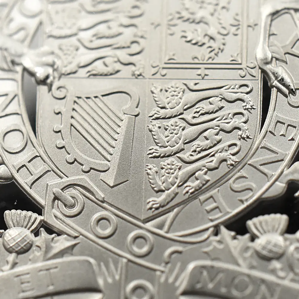 ©ロイヤルミント今回ご紹介のコインは、約1100年間にわたって英国貨幣のお膝元として数えきれないほど多くの王室関連コインを世に送り出したロイヤルミントの真骨頂ともいえるコート・オブ・アームズを主題とする新しい作品です。