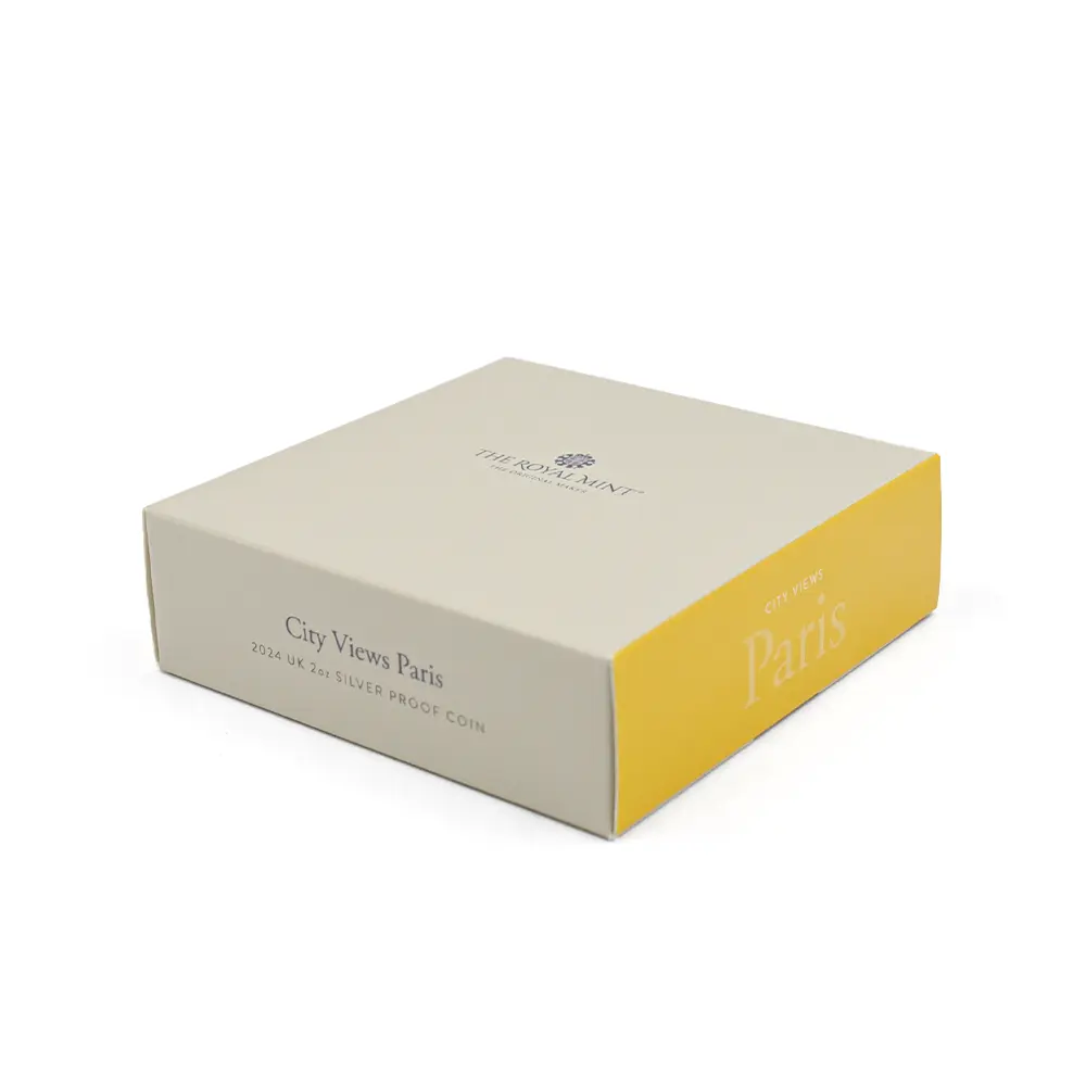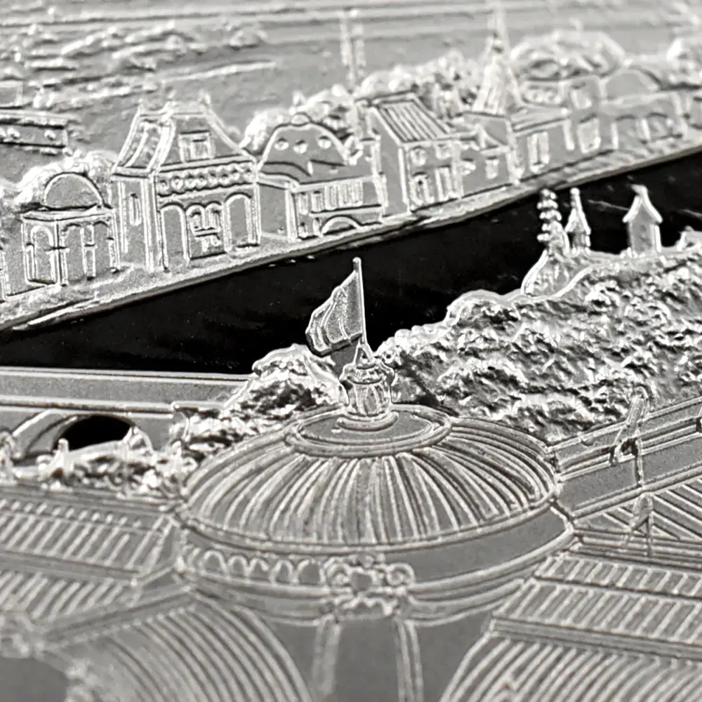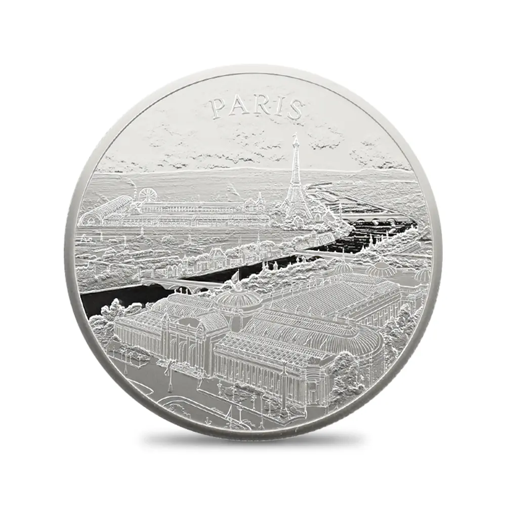 1100有余年に及ぶ悠久の英国史をコインによって彩ってきたロイヤルミントこと王立造幣局。英国貨幣の粋を極めた綺羅星のごとく名品の数々を世に送り出してきたロイヤルミントですが、世紀が変わって今日なおもその創作意欲は衰えを知りません。近年数多くの傑作モダンコインシリーズを発表して大成功を収めている同機関が、世界の歴史的大都市に捧げるオマージュとして発表するのが新作「都市景観シリーズ」です、第1弾「ロンドン」、第2弾「ローマ」と続いた過去のコレクションですが、どちらもそれぞれの都市の過去を象徴する景観をコイン裏面に描いて空前の成功を収めました。第2弾リリースの後、しばらく新作の発表がなかった同シリーズですが、今回はその第3弾として世界を代表する大都市パリを選定しました。その歴史的な都市空間を見事にコイン化した輝かしいデザインによって今後、注目を集めることでしょう。1889年、フランス革命勃発100周年記念の折に建設されたエッフェル塔を中心として俯瞰されるその優美な都市景観は、この人気コインシリーズの第3弾にふさわしい充実した内容であると断言できます。セーヌ川の流れとともに歴史を歩んできたパリを象徴する風景が、この作品によってコイン上に再現されたことは誠に喜ばしい事実です。コイン表面には、2022年の代替わりに際して英国王位を相続した現国王チャールズ3世の「公式第1コイン肖像」が掲げられています。隣国ではあるものの、一見無関係と思われる英国王室とフランス国家の関係ですが、長年のライバル関係を乗り越えて、20世紀初頭のエドワード7世の治世下の1904年には英仏協商が調印され、両国の未来的な友好関係を強く印象付けました。ライバルとは言えども、歴史上において常に影響しあい、それぞれが独自の魅力的な文化を育んできたことも確かです。今後のシリーズの継続が楽しみな「都市景観シリーズ」ですが、英国コイン上にフランス共和国の首都パリの風景が再現されたことは歴史的にも意義の深いことと思われます。
