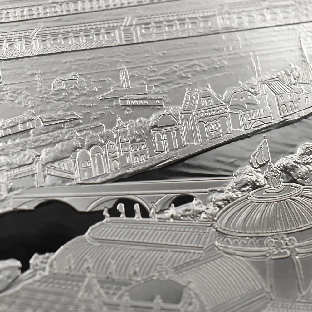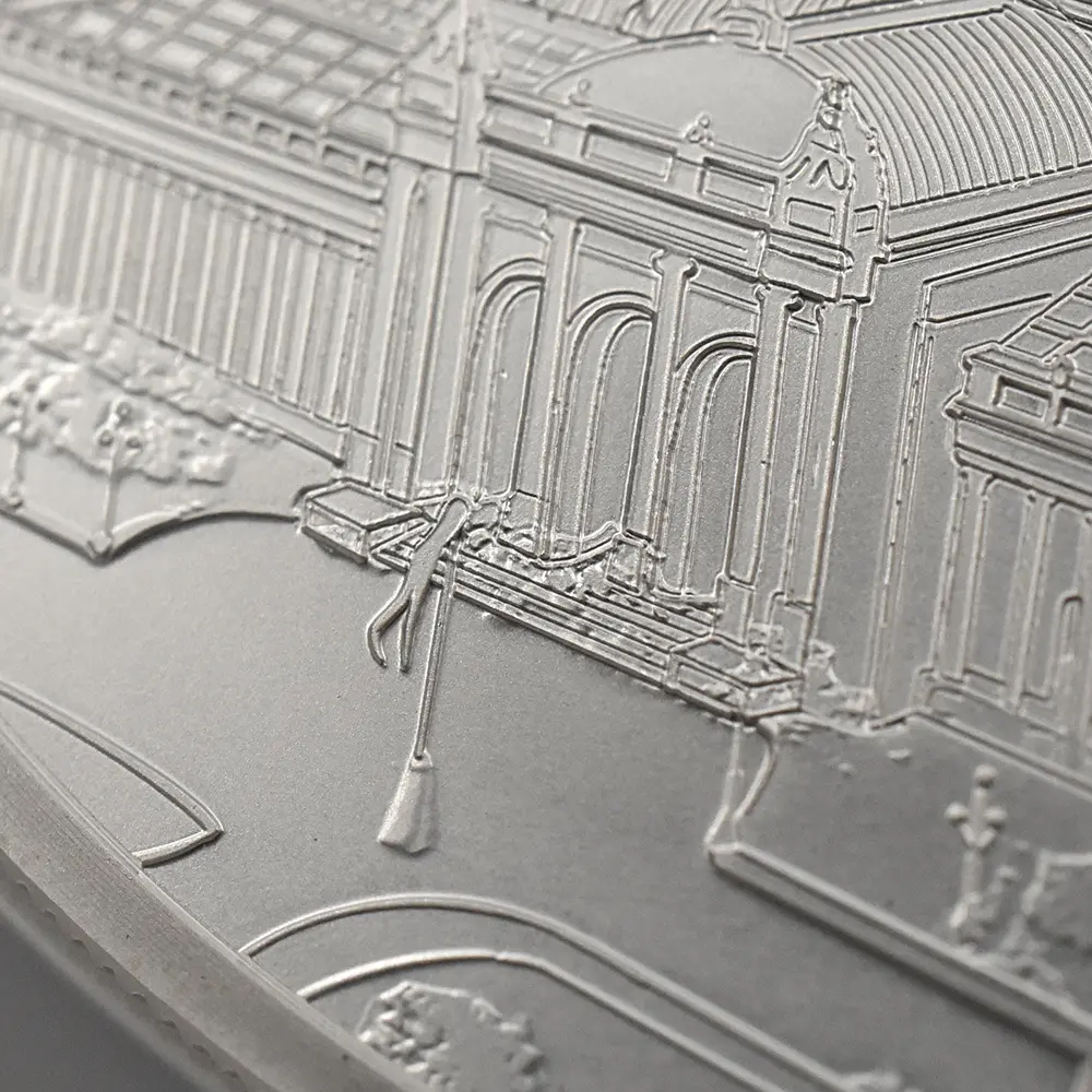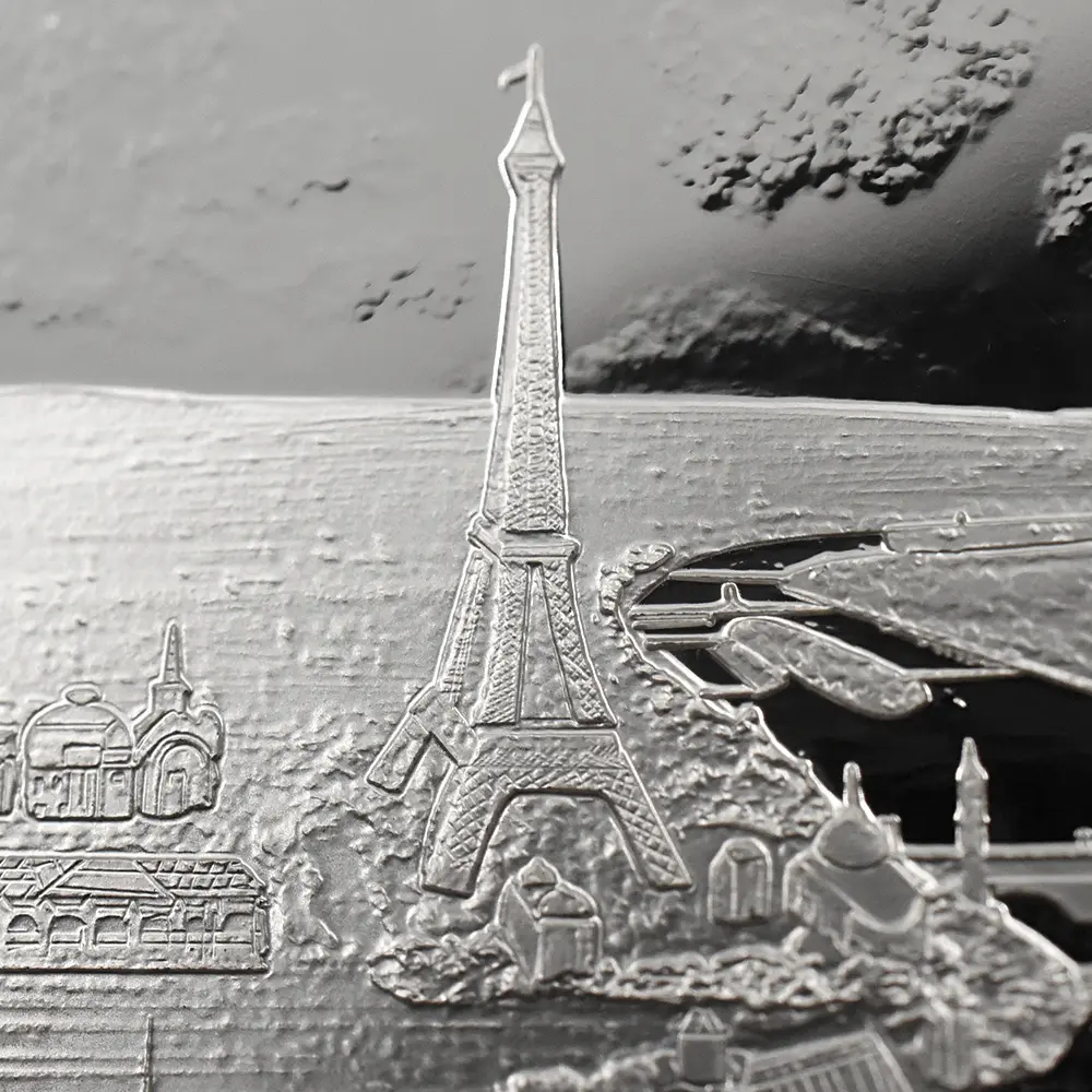 1100有余年に及ぶ悠久の英国史をコインによって彩ってきたロイヤルミントこと王立造幣局。英国貨幣の粋を極めた綺羅星のごとく名品の数々を世に送り出してきたロイヤルミントですが、世紀が変わって今日なおもその創作意欲は衰えを知りません。近年数多くの傑作モダンコインシリーズを発表して大成功を収めている同機関が、世界の歴史的大都市に捧げるオマージュとして発表するのが新作「都市景観シリーズ」です、第1弾「ロンドン」、第2弾「ローマ」と続いた過去のコレクションですが、どちらもそれぞれの都市の過去を象徴する景観をコイン裏面に描いて空前の成功を収めました。第2弾リリースの後、しばらく新作の発表がなかった同シリーズですが、今回はその第3弾として世界を代表する大都市パリを選定しました。その歴史的な都市空間を見事にコイン化した輝かしいデザインによって今後、注目を集めることでしょう。1889年、フランス革命勃発100周年記念の折に建設されたエッフェル塔を中心として俯瞰されるその優美な都市景観は、この人気コインシリーズの第3弾にふさわしい充実した内容であると断言できます。セーヌ川の流れとともに歴史を歩んできたパリを象徴する風景が、この作品によってコイン上に再現されたことは誠に喜ばしい事実です。コイン表面には、2022年の代替わりに際して英国王位を相続した現国王チャールズ3世の「公式第1コイン肖像」が掲げられています。隣国ではあるものの、一見無関係と思われる英国王室とフランス国家の関係ですが、長年のライバル関係を乗り越えて、20世紀初頭のエドワード7世の治世下の1904年には英仏協商が調印され、両国の未来的な友好関係を強く印象付けました。ライバルとは言えども、歴史上において常に影響しあい、それぞれが独自の魅力的な文化を育んできたことも確かです。今後のシリーズの継続が楽しみな「都市景観シリーズ」ですが、英国コイン上にフランス共和国の首都パリの風景が再現されたことは歴史的にも意義の深いことと思われます。