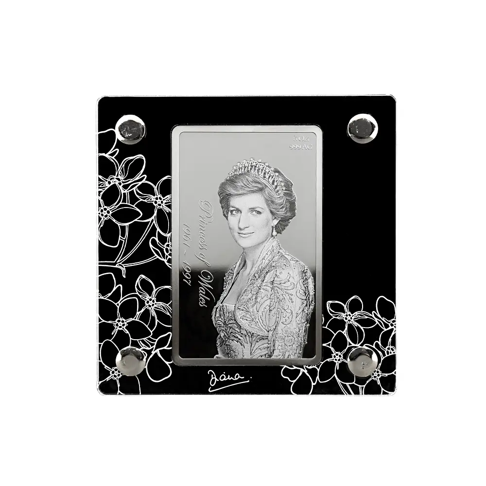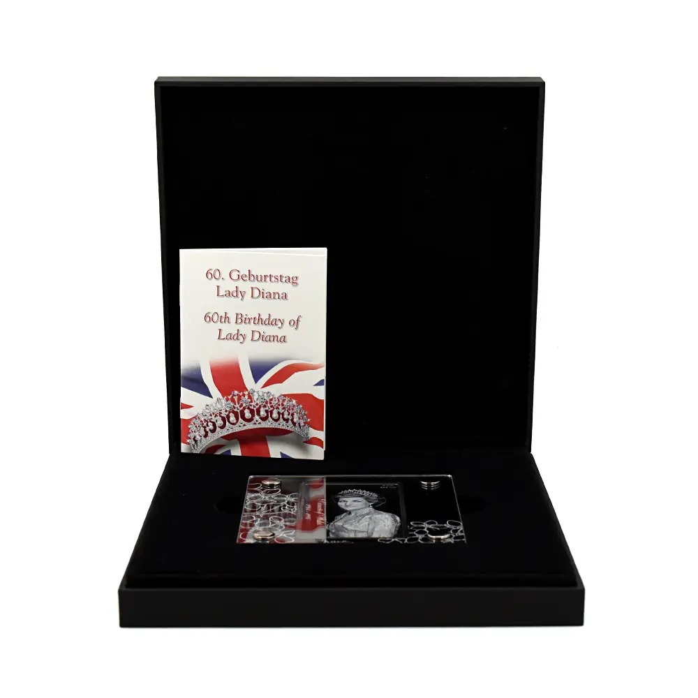 ニウエ 2021 エリザベス2世 ダイアナ妃生誕60周年記念 ダイヤモンド仕様 10ドル5オンスプルーフ銀貨 未鑑定 箱付き