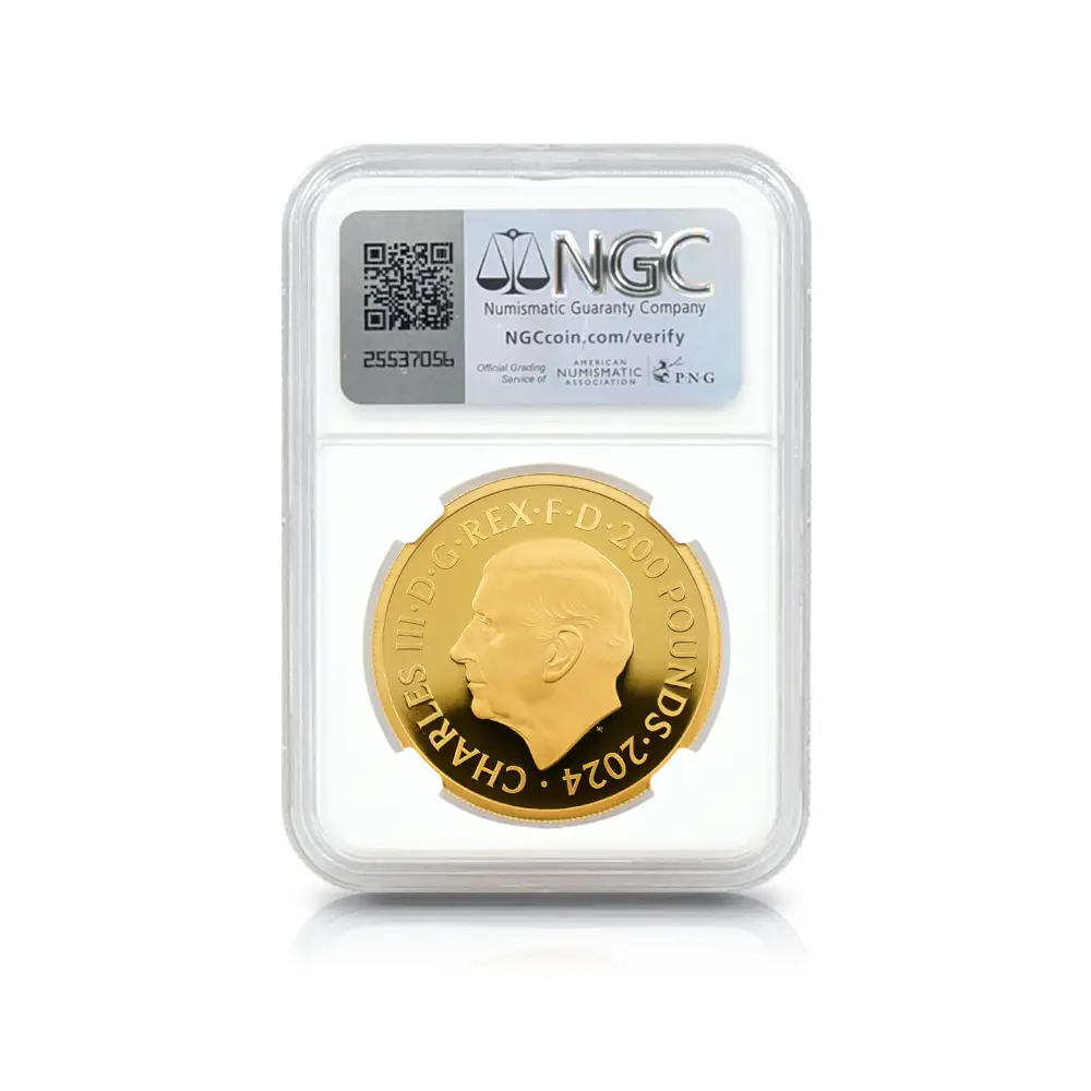 2024 チャールズ3世 ピストルッチ作聖ジョージ竜退治 200ポンド 2オンス 金貨 マットプルーフ仕上げ NGC PF70MATTE 箱付き