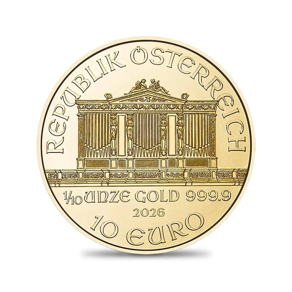 オーストリア 2026 ウィーンフィル 10ユーロ 1/10オンス 金貨 【5枚】