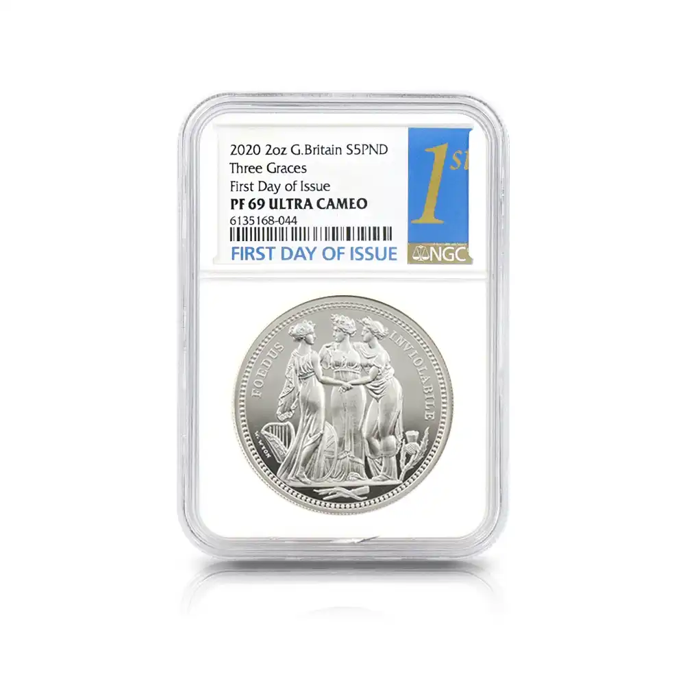 イギリス 2020 エリザベス2世 スリーグレーセス 5ポンド2オンス銀貨 発行即日鑑定品 NGC PF69UC 箱付き