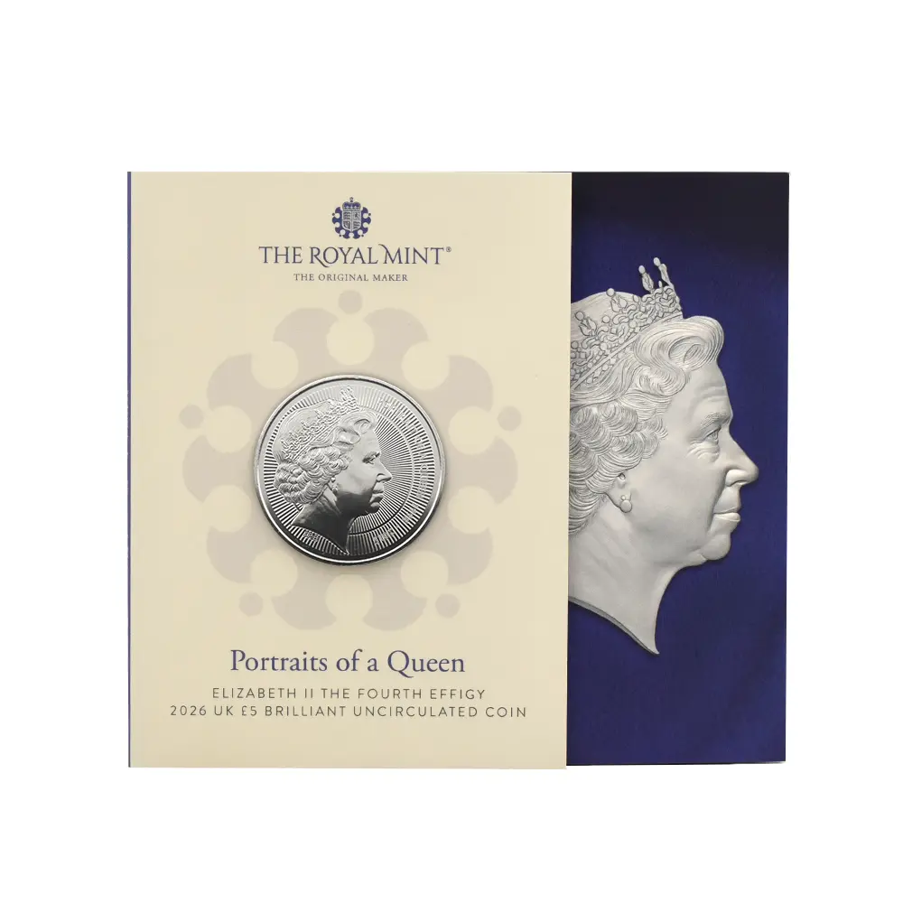 イギリス 2026 チャールズ3世 エリザベス2世のコイン肖像シリーズ 第四弾 5ポンドBU白銅貨 未鑑定 パッケージ付き