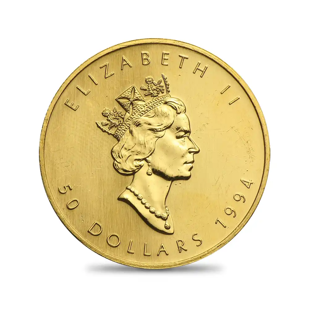 カナダ 1994 エリザベス2世 メイプルリーフ 50ドル 1オンス 地金型金貨 【1枚】 (コインケース付き)