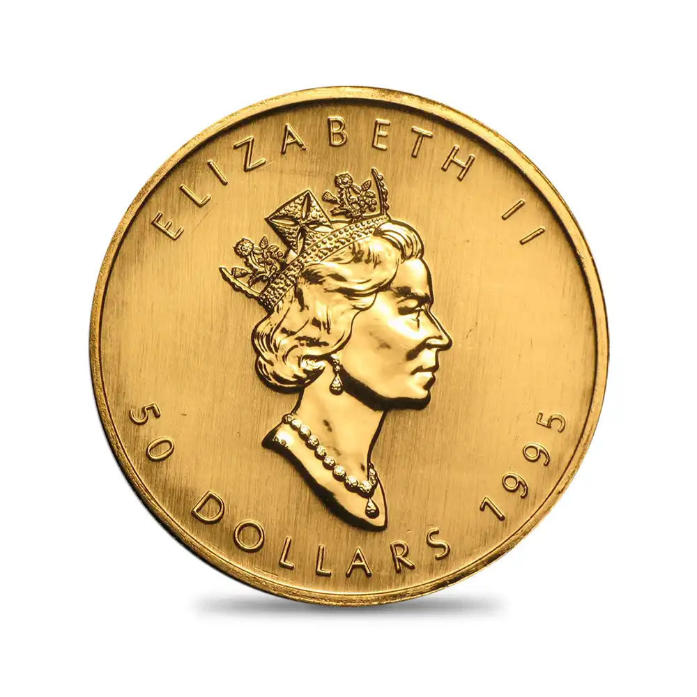 カナダ 1995 エリザベス2世 メイプルリーフ 50ドル 1オンス 地金型金貨 【1枚】 (コインケース付き)